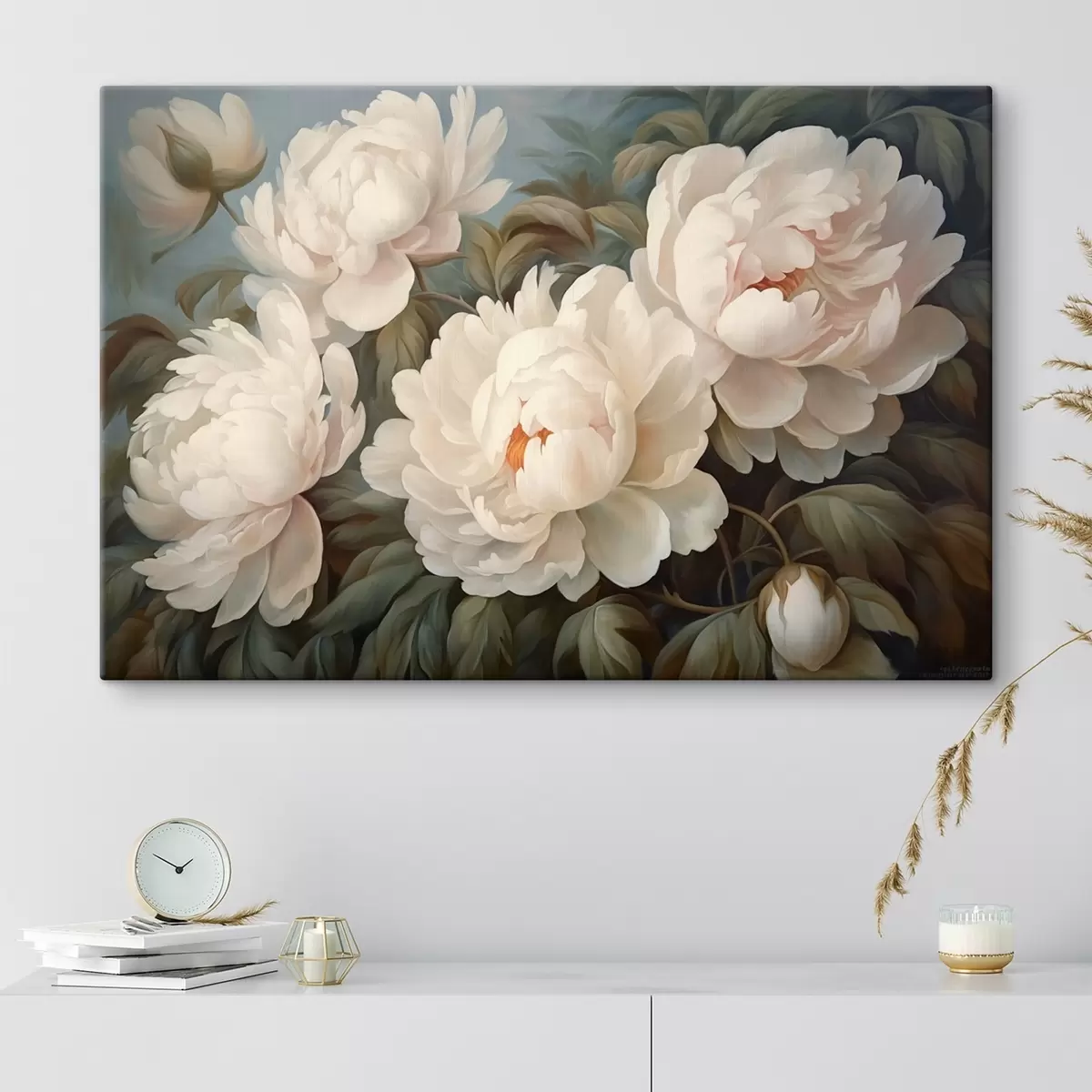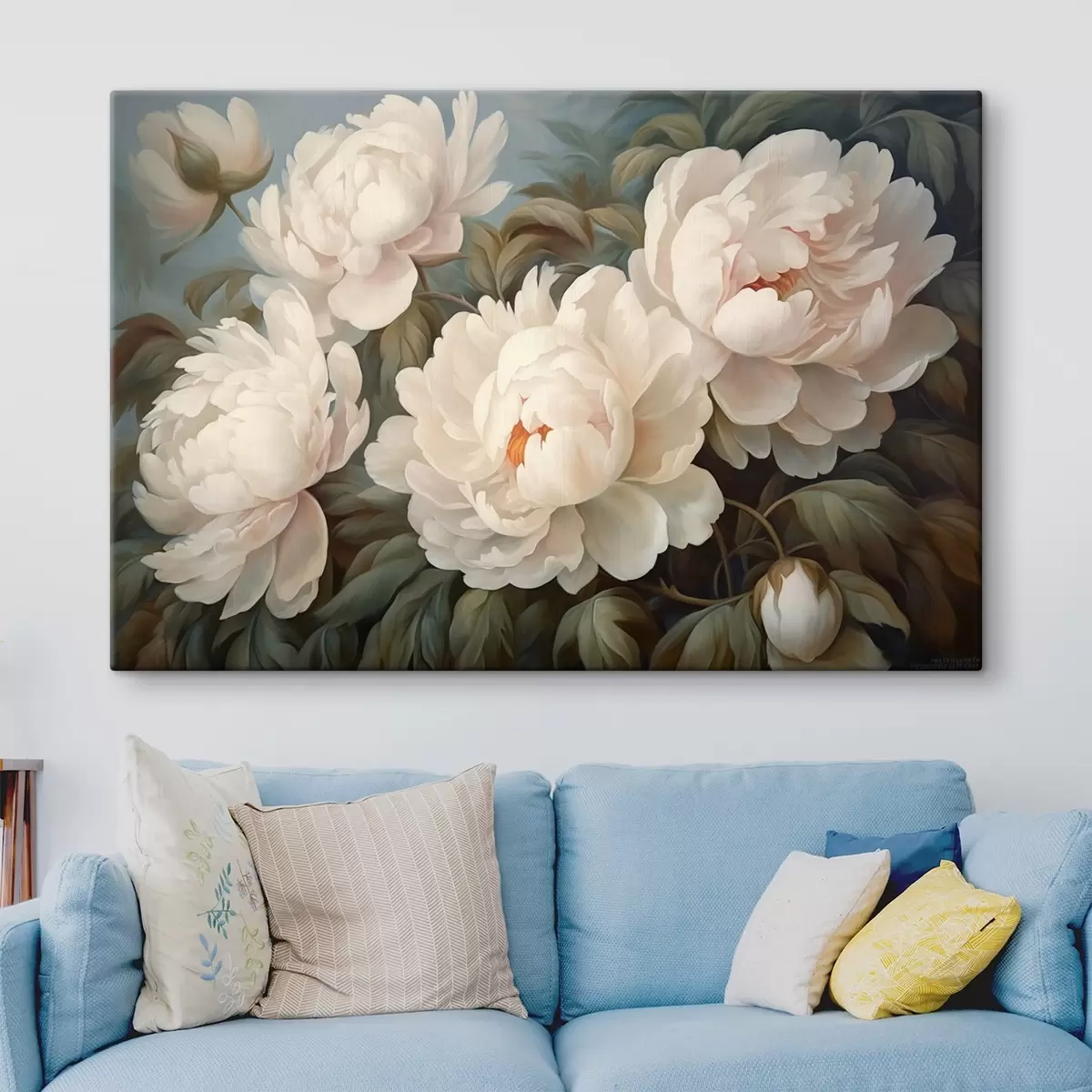 Gemälde Weiße Blüten und Blätter im Nebel Art. s43091