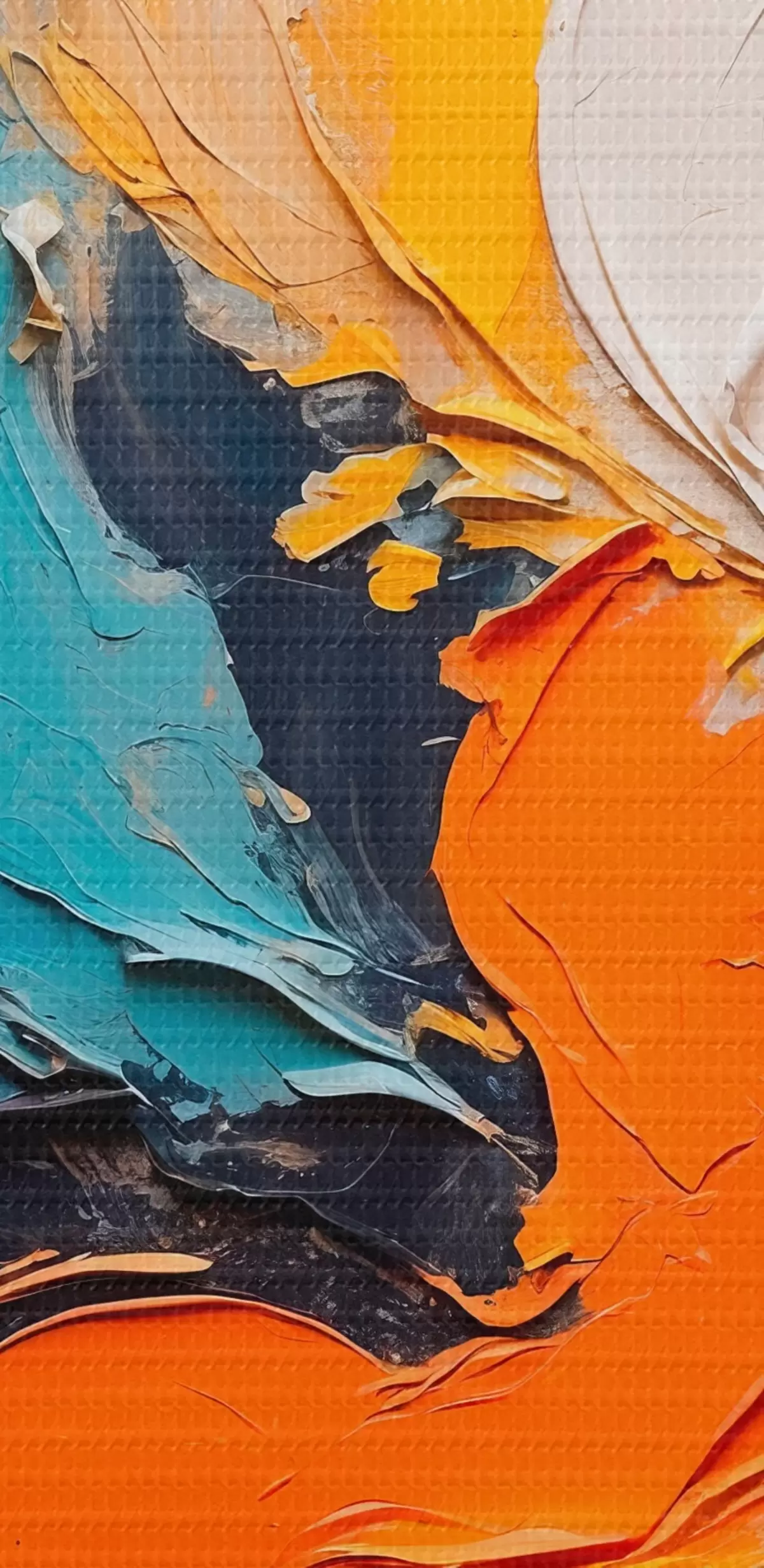 Fototapete Abstrakte Malerei in Ölmalerei Stil mit orange, blau und weißen Farben s43094