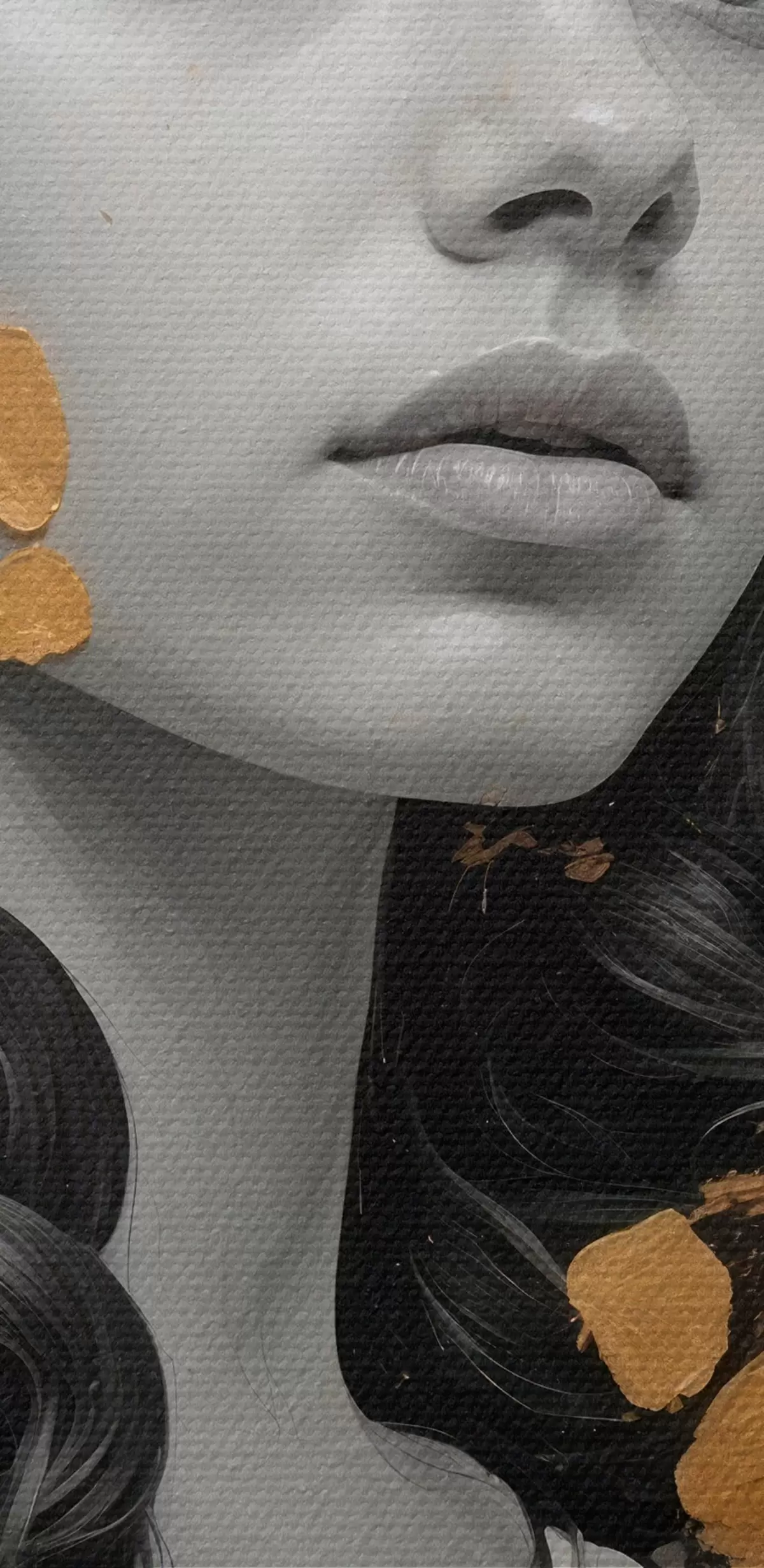 Um die Leinwand auf Keilrahmen zu spannen, ohne das Bild zu beschädigen, verwenden wir ein gespiegeltes Bild.