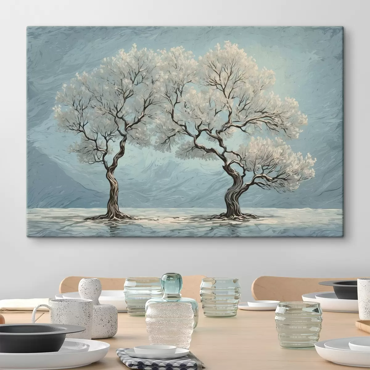 Fototapete Weiße Bäume in Acrylmalerei Stil s43112