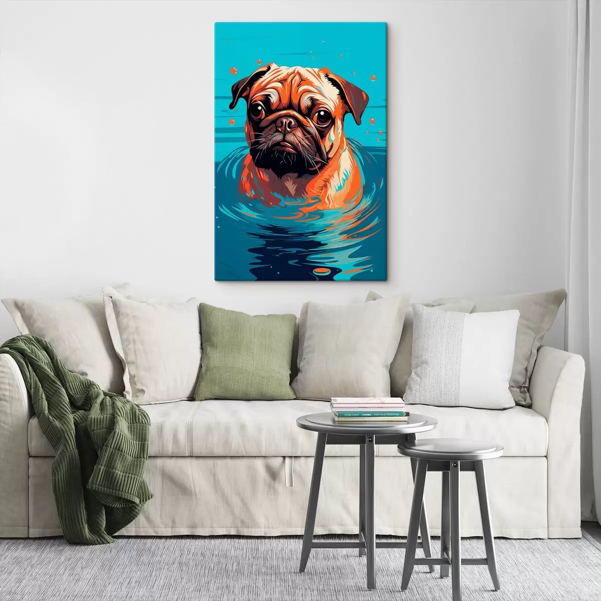 Gemälde Ein stilisiertes Porträt eines Mopses im Wasser mit ausdrucksvollem Blick Art. s43136