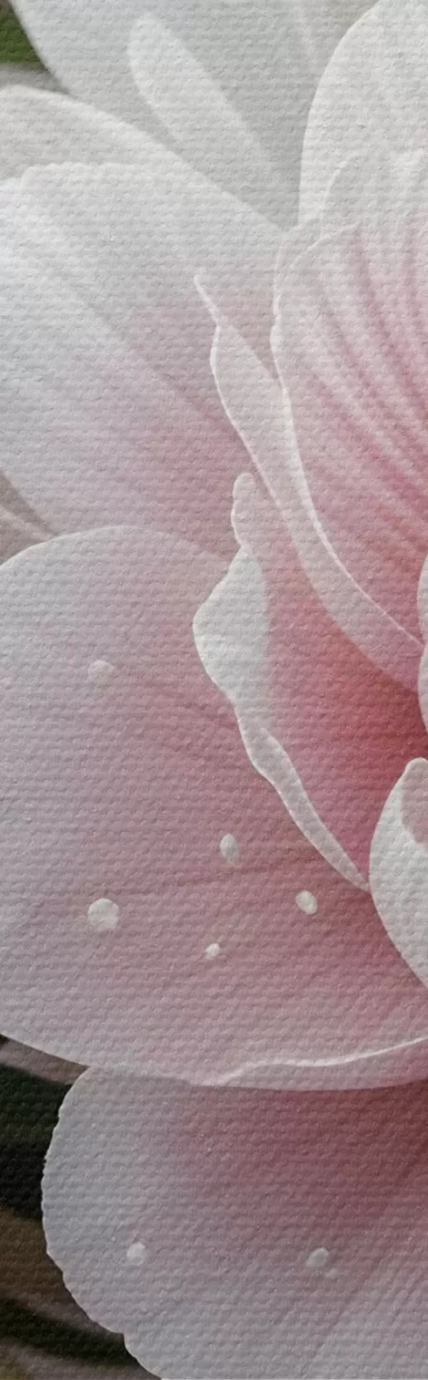 Drei Materialtypen stehen zur Verfügung: Economic Canvas - ein dichtes und haltbares Material für den Digitaldruck, identisch mit Malerleinwand, wasserfeste Oberfläche, realistische Wiedergabe von Details, mittelkörniges Material. Premium Canvas - die Textur ähnelt der einer Malerleinwand (verwobene kleine Fäden). Weiche, detaillierte Wiedergabe des Bildes auf einer matten Oberfläche. Eco-Premium - hochwertiges Gewebe aus 100% Baumwolle. Dank der natürlichen Baumwollfasern ist das Material langlebig und verschleißfest. Hervorragende Farbwiedergabe und Detailtreue.