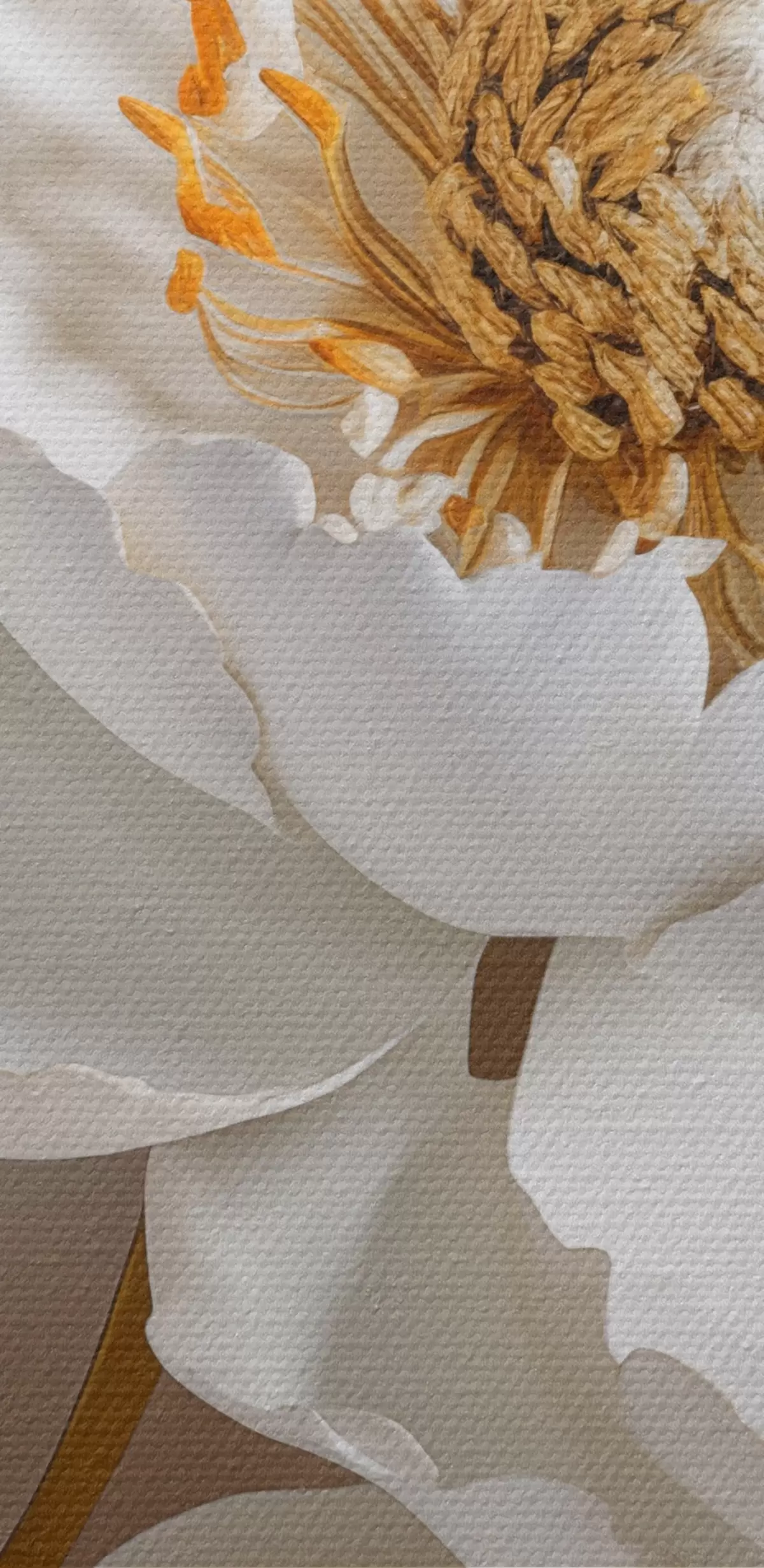 Gemälde Weiße zarte detaillierte dekorative Pfingstrose Blumen mit gelben Blättern, ist der Hintergrund eine hellgraue Farbe Art. s43176