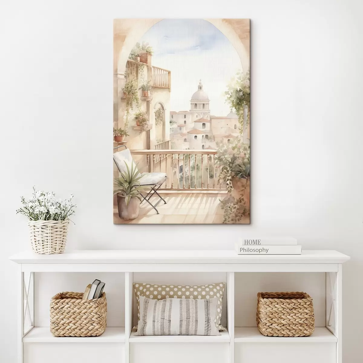 Gemälde Ästhetischer Sommerbalkon, Spanien, alte Architektur, Blomming, Aquarellstil Art. s43180