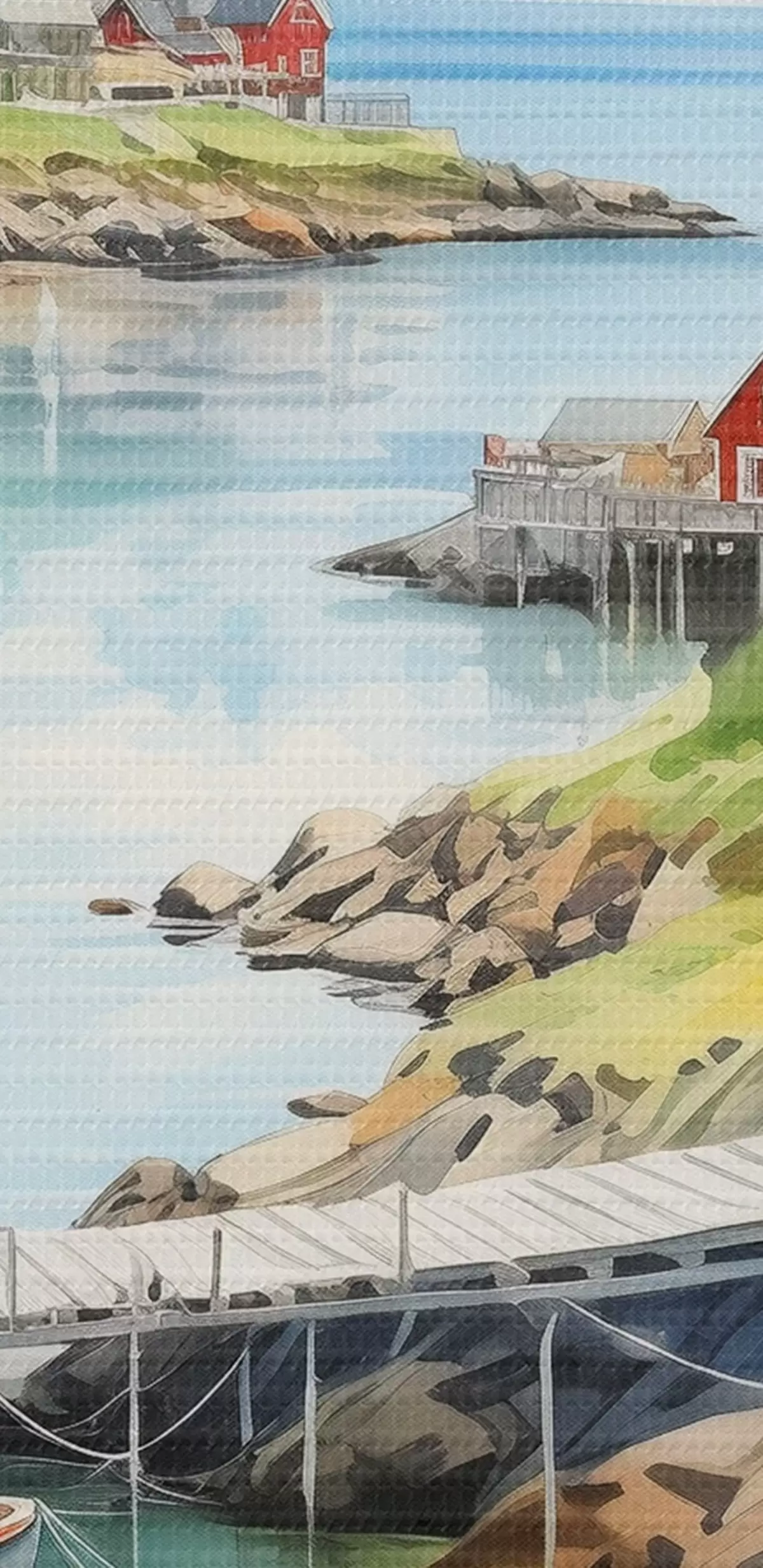 Gemälde Lofoten Inseln Sommerlandschaft, rote Häuser, Berge, Boote Art. s43187