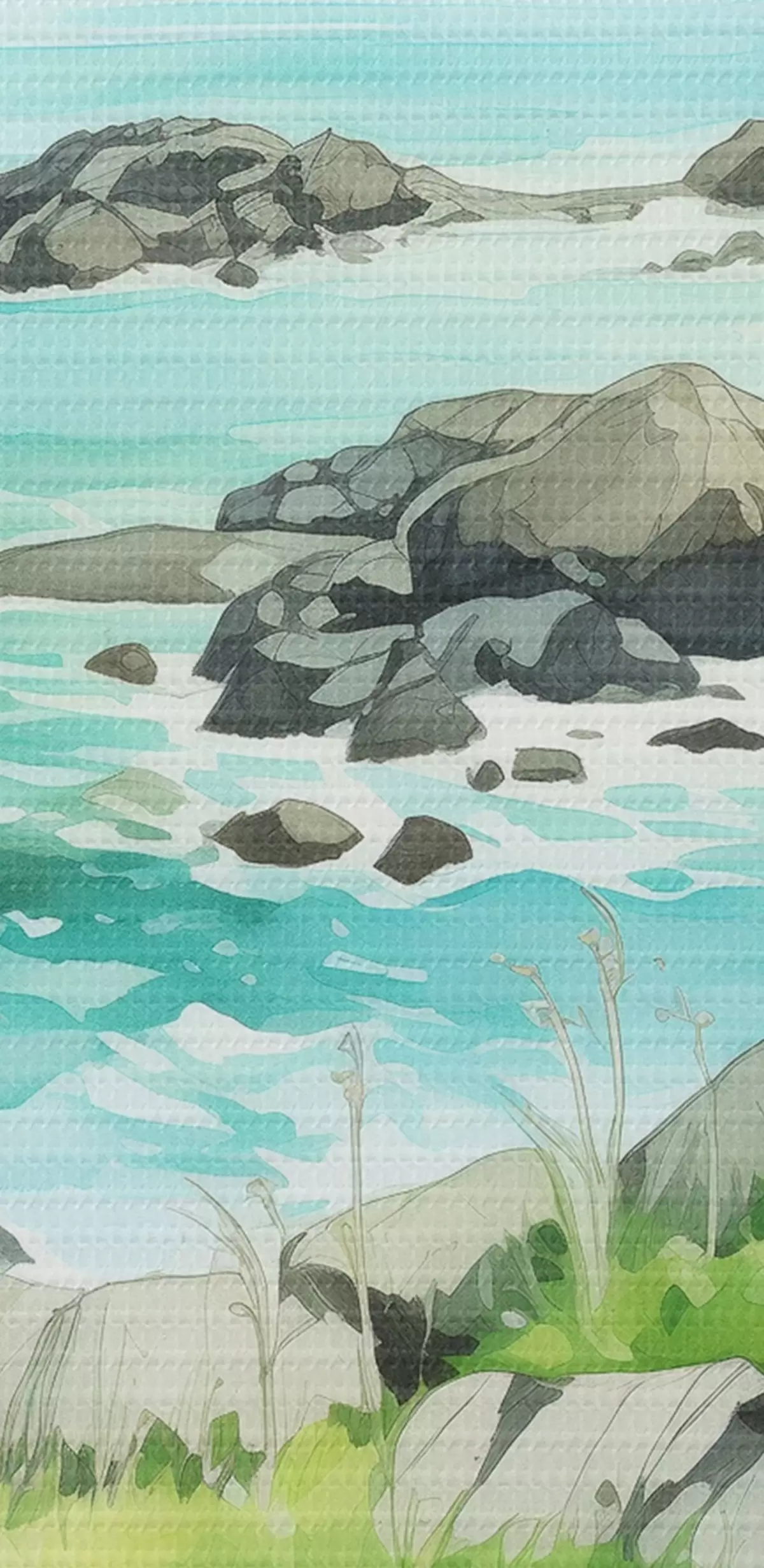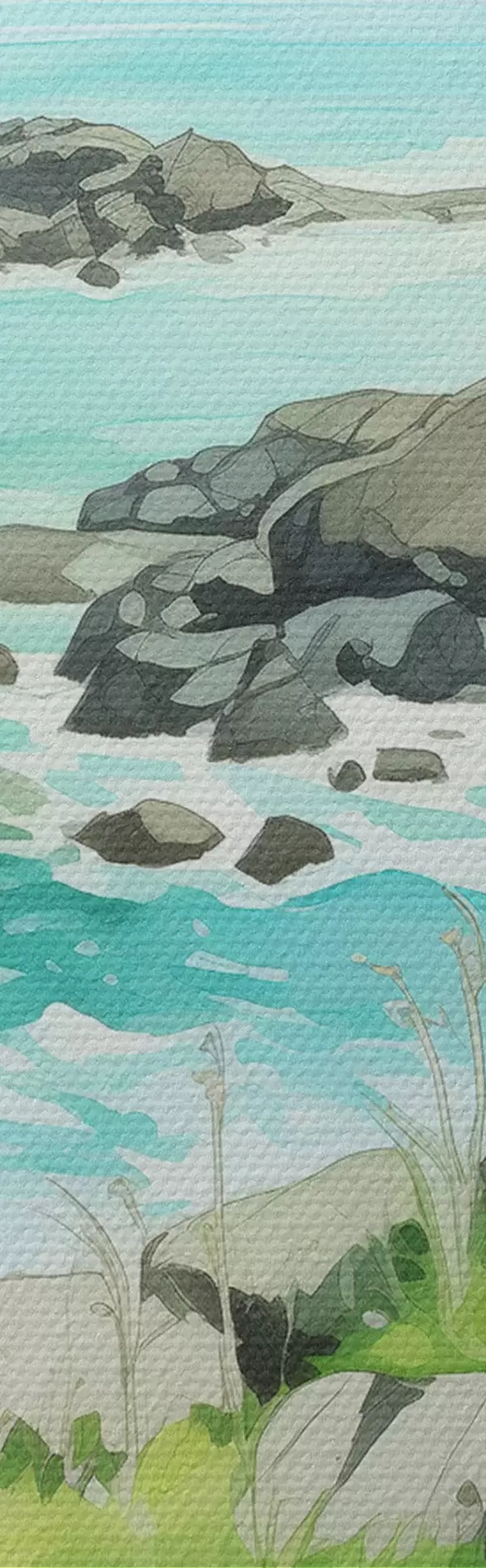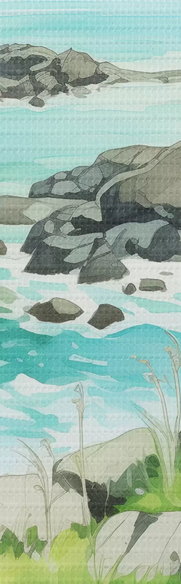 Fototapete Norwegen Natur, Fjorde, Sommerlandschaft, grünes Gras, Berge, Aquarellstil s43188