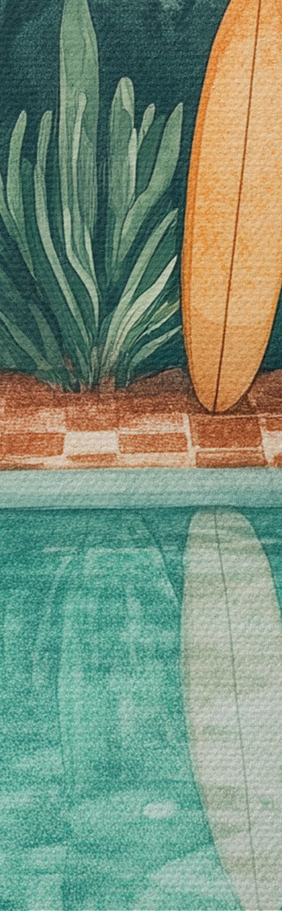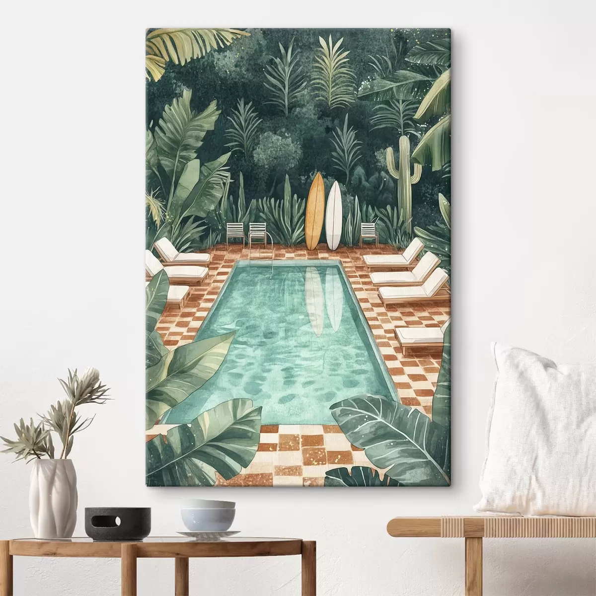 Gemälde Vintage-Sommer-Pool, tropischer Wald, Grünzeug, Palmen, Aquarell-Stil Art. s43191