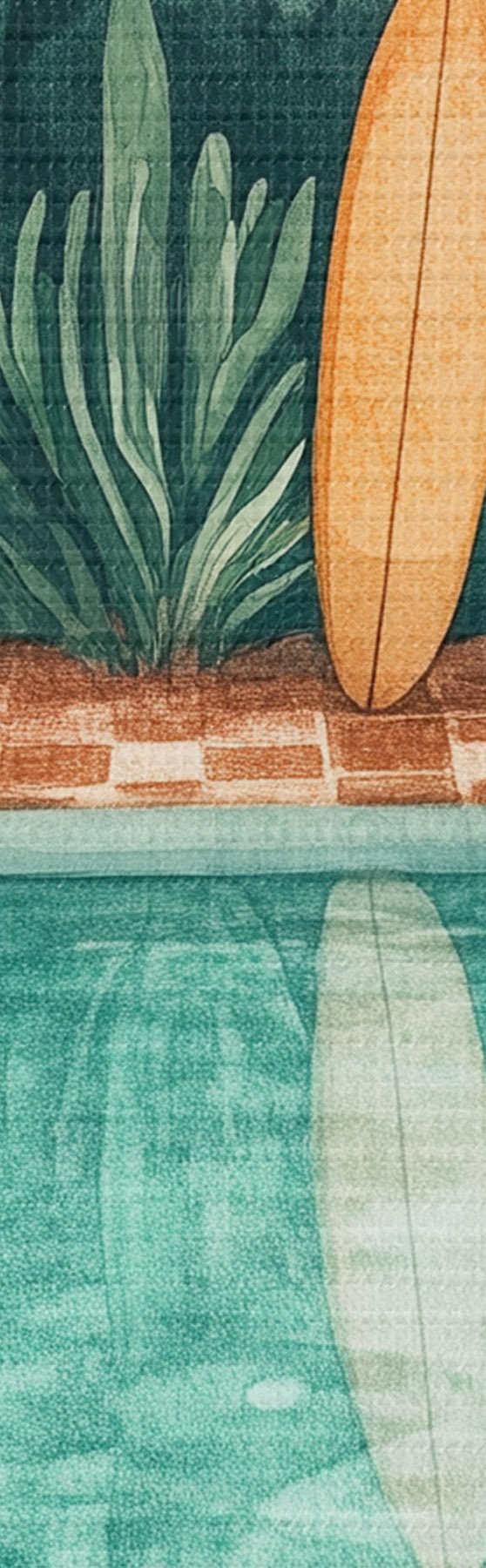 Fototapete Vintage-Sommer-Pool, tropischer Wald, Grünzeug, Palmen, Aquarell-Stil s43191
