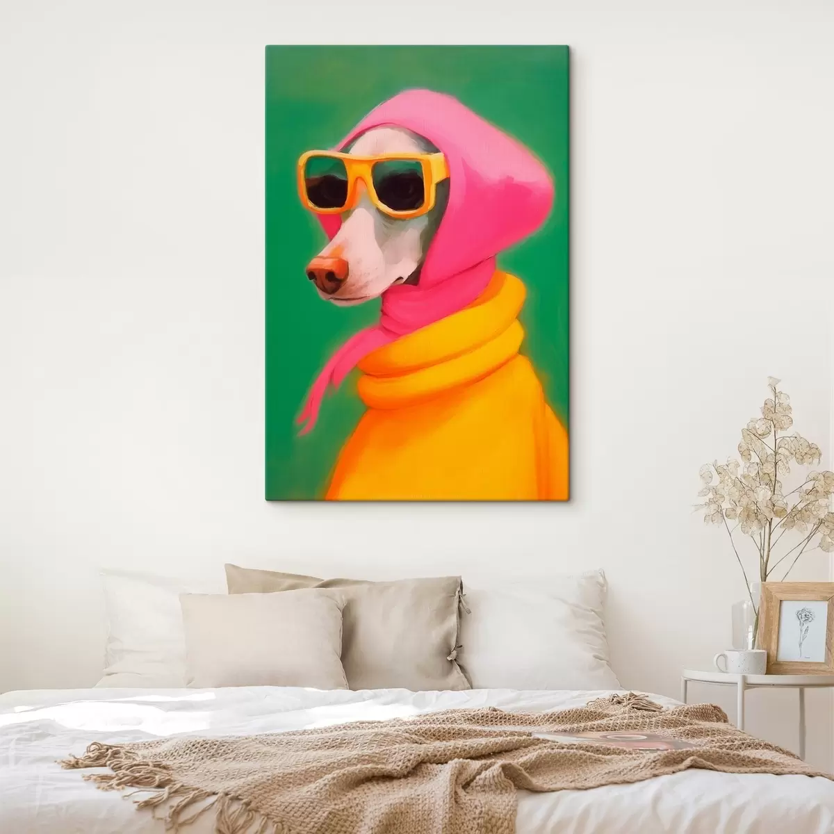 Gemälde Stylischer Hund in heller Kleidung Art. s43265