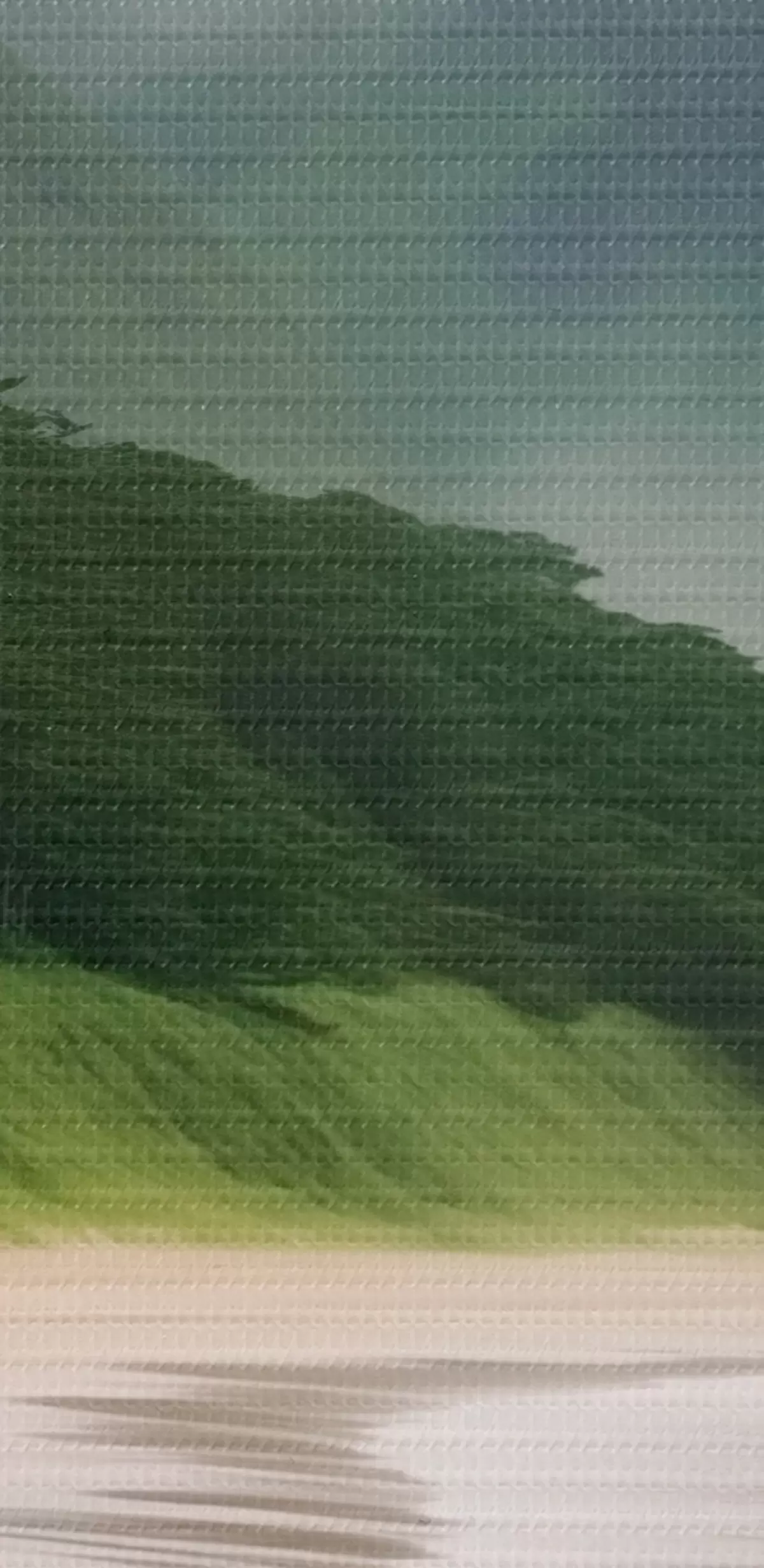 Fototapete Nebliger Strand in der Nähe grüner Pisten s43271