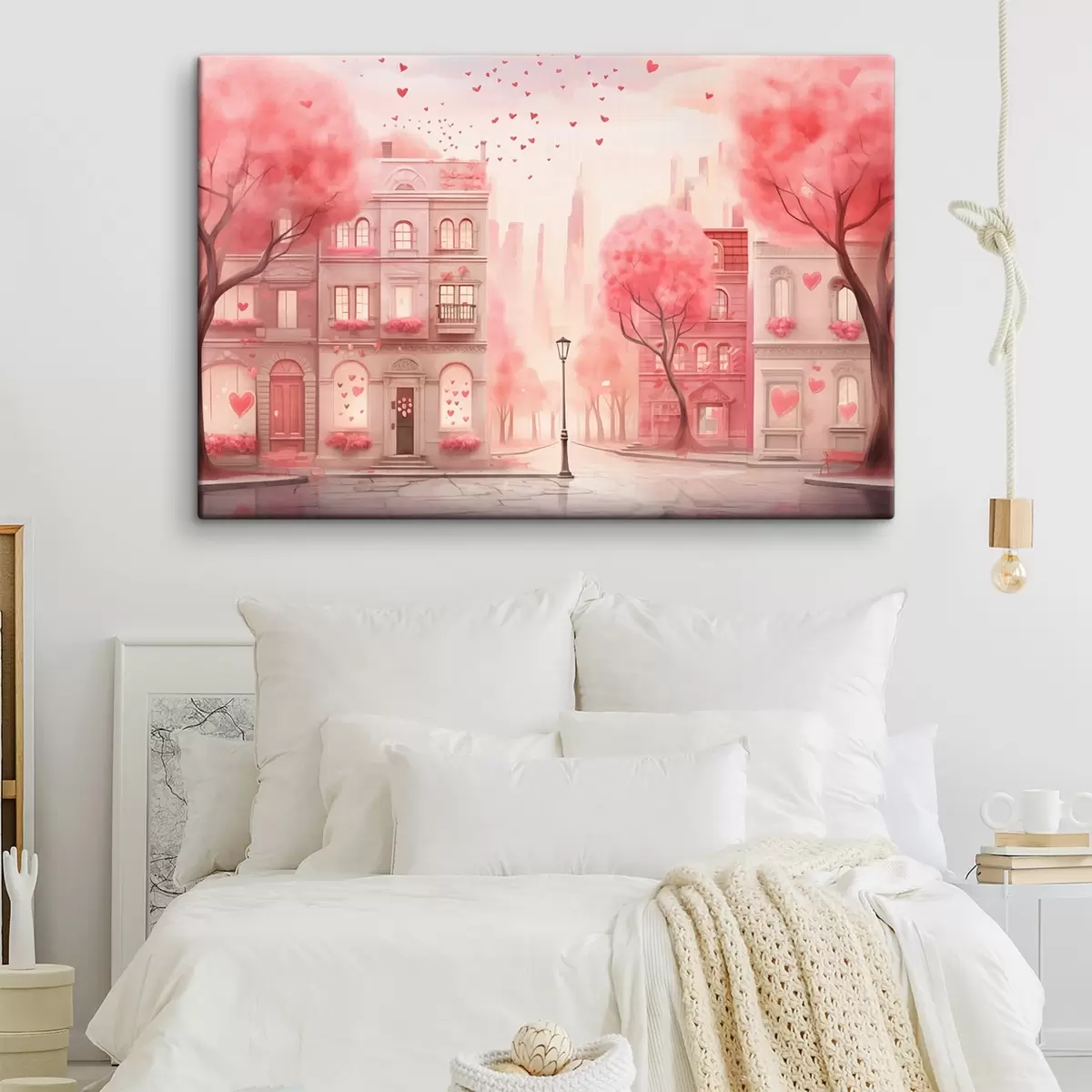 Gemälde Romantische rosa Straße mit Herzen Art. s43324