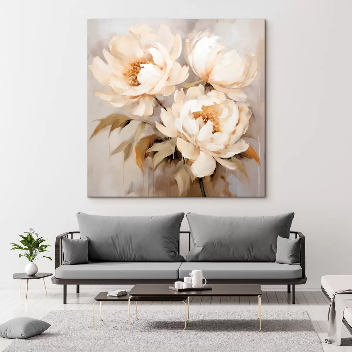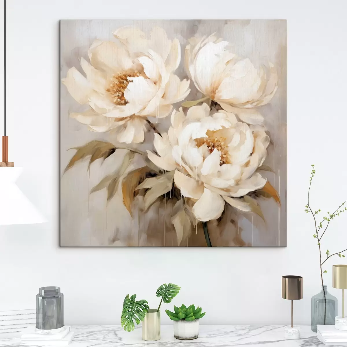 Gemälde Zarte Pfingstrosen in neutralen Tönen im Stil abstrakter Malerei Art. s43387