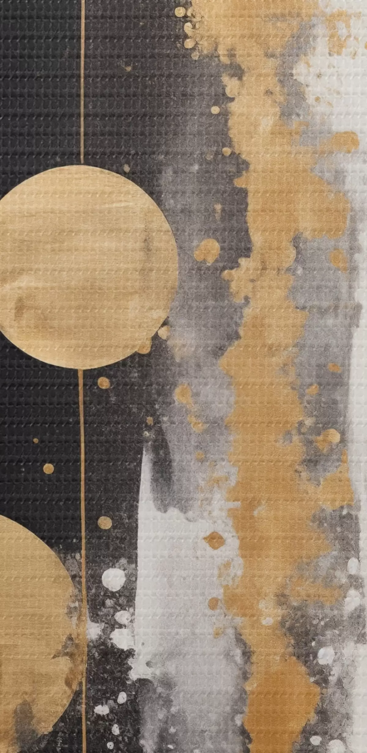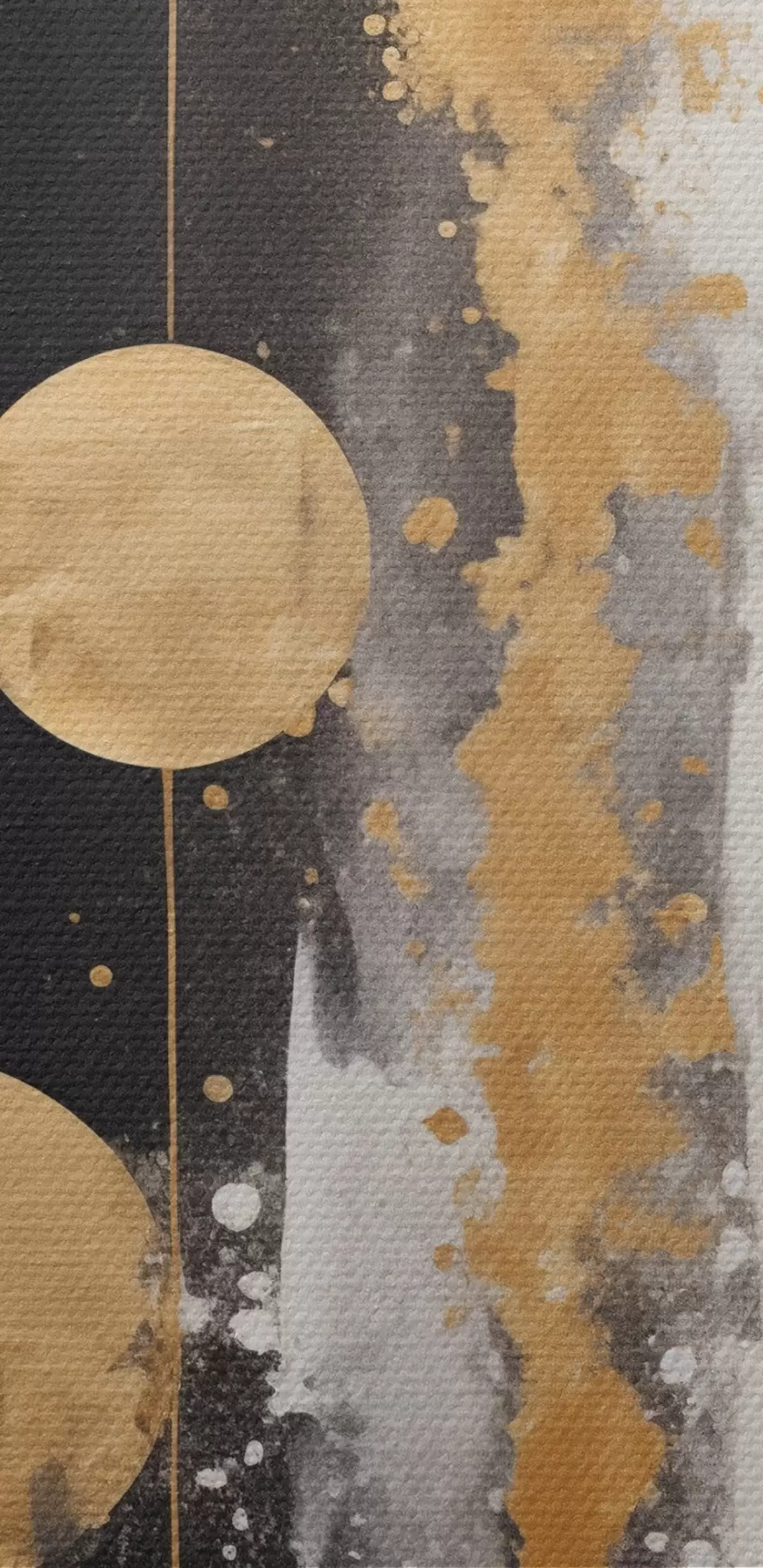 Gemälde Abstrakte Kunst mit gelben Kreisen auf schwarzem und weißem Hintergrund mit weißen und gelben Flecken hängen Art. s43410