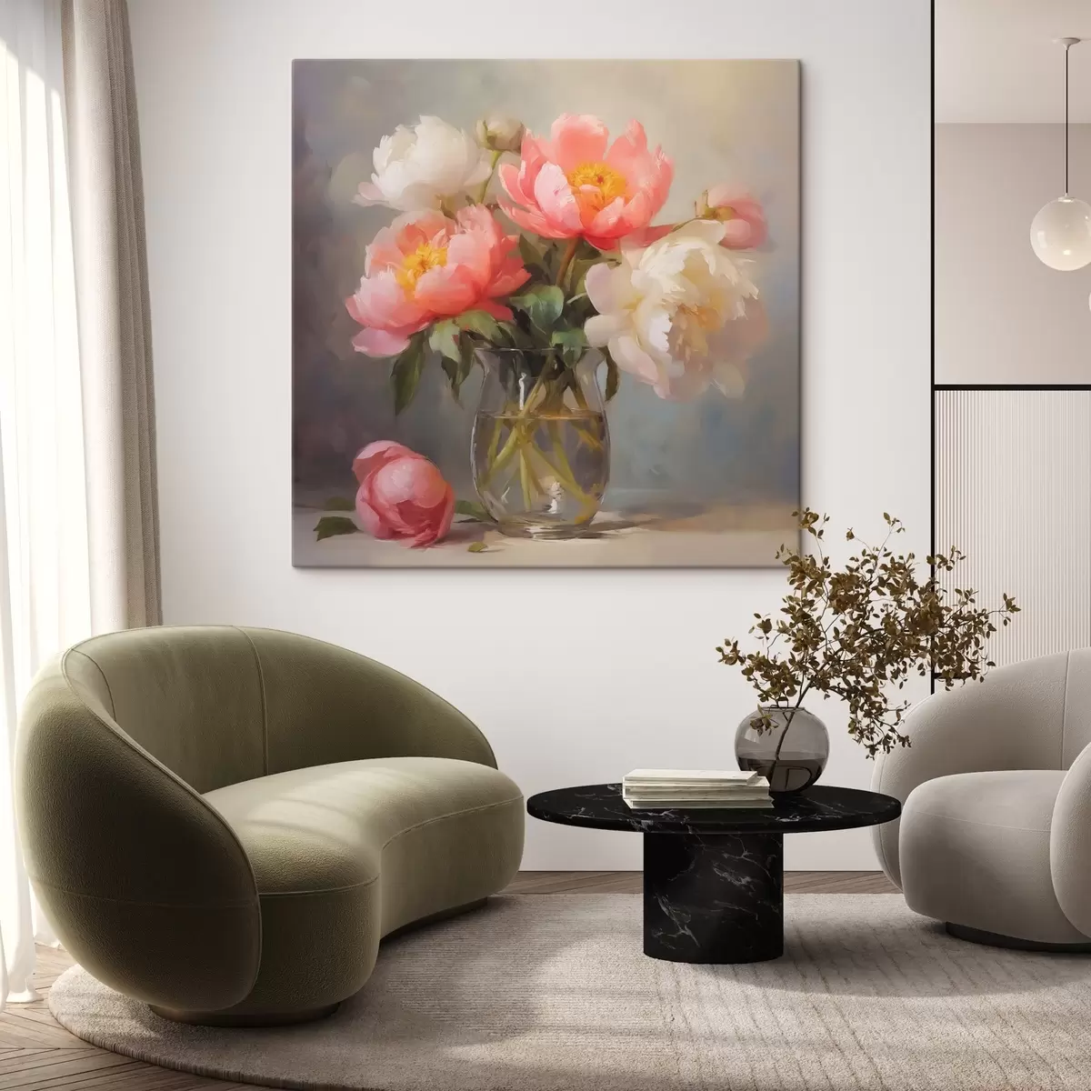 Fototapete Pfingstrosen in einer Vase Nachahmung Gemälde s43438