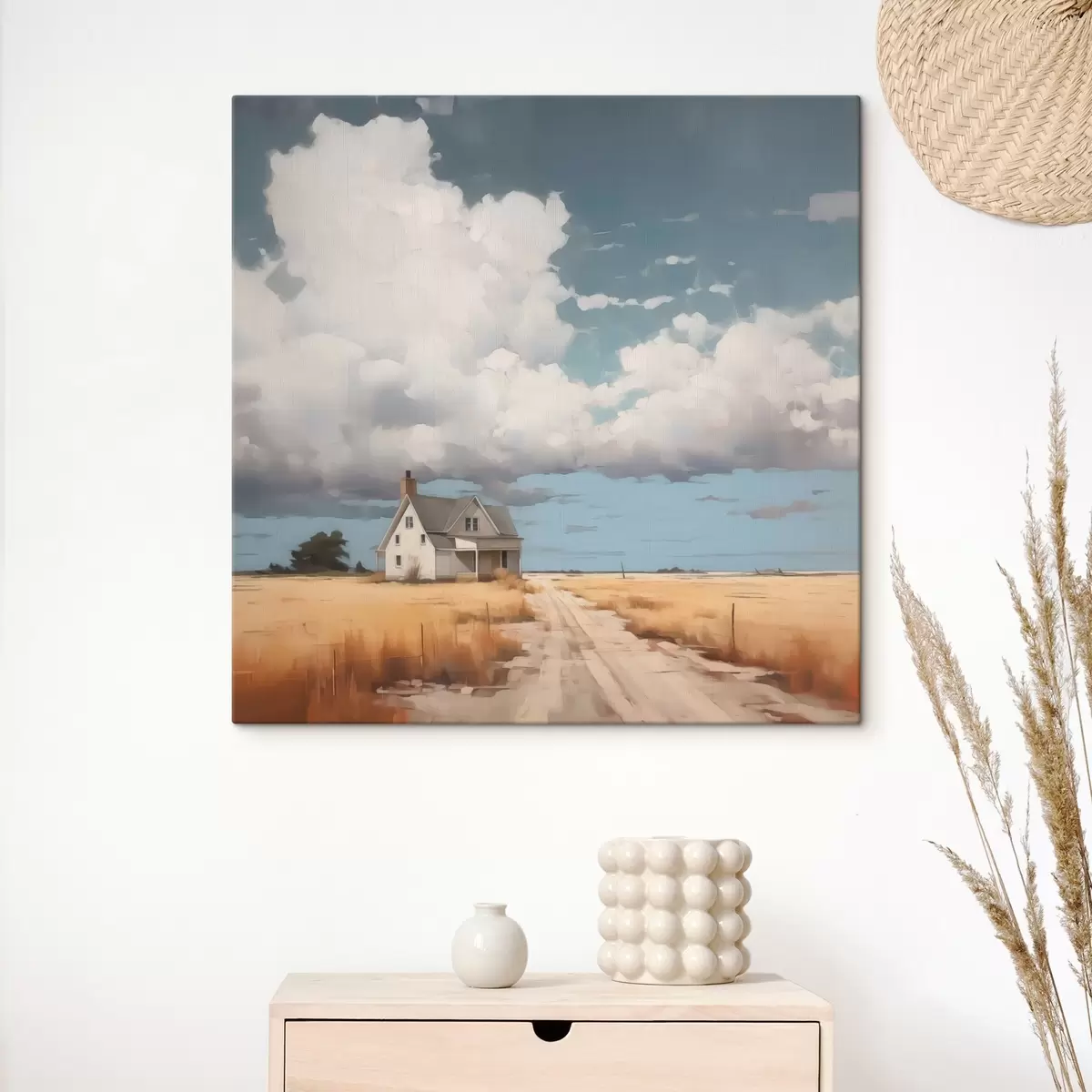 Fototapete Haus auf dem Feld Nachahmung der Malerei s43440