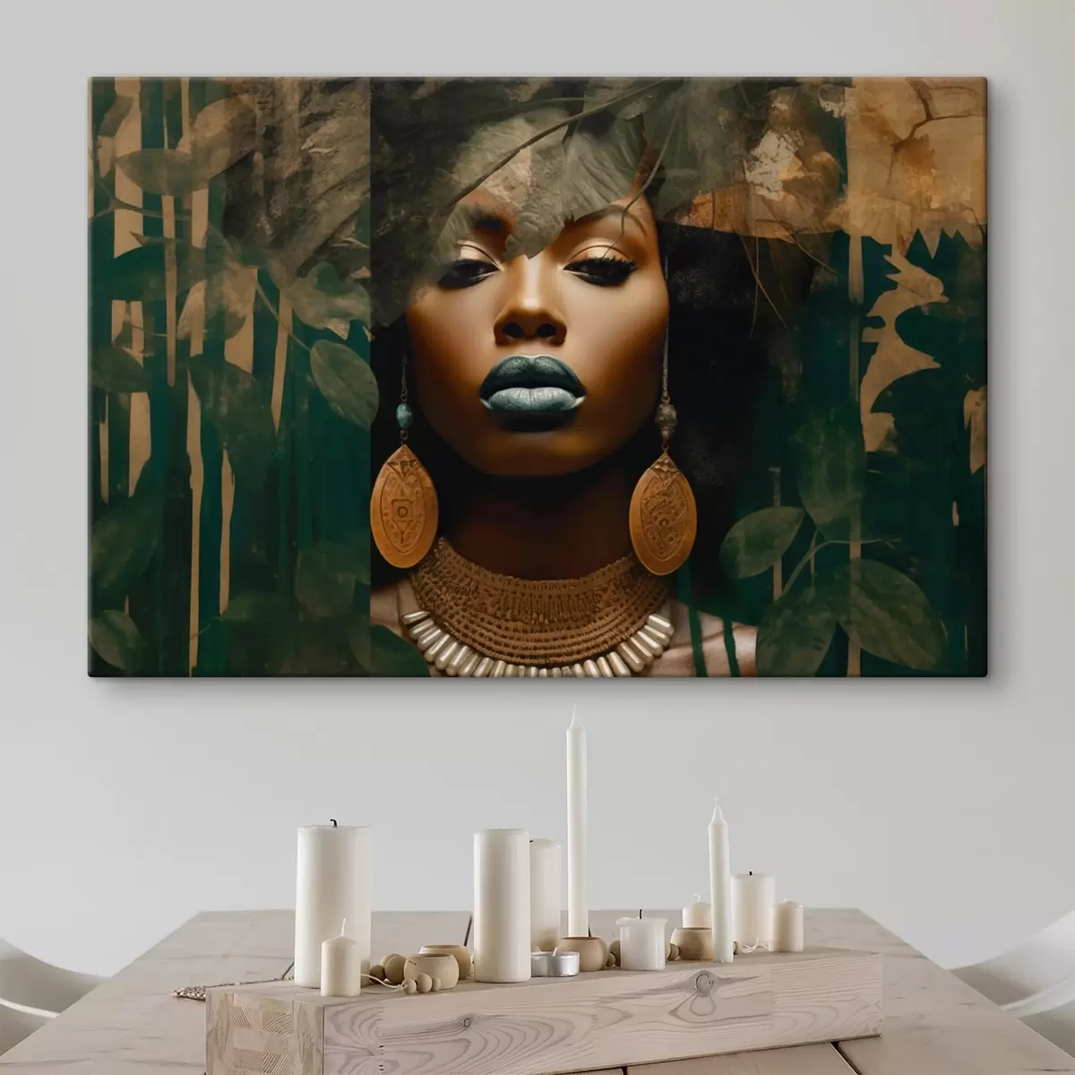 Gemälde Gesicht eines Mädchens auf abstraktem Waldhintergrund Art. s43466