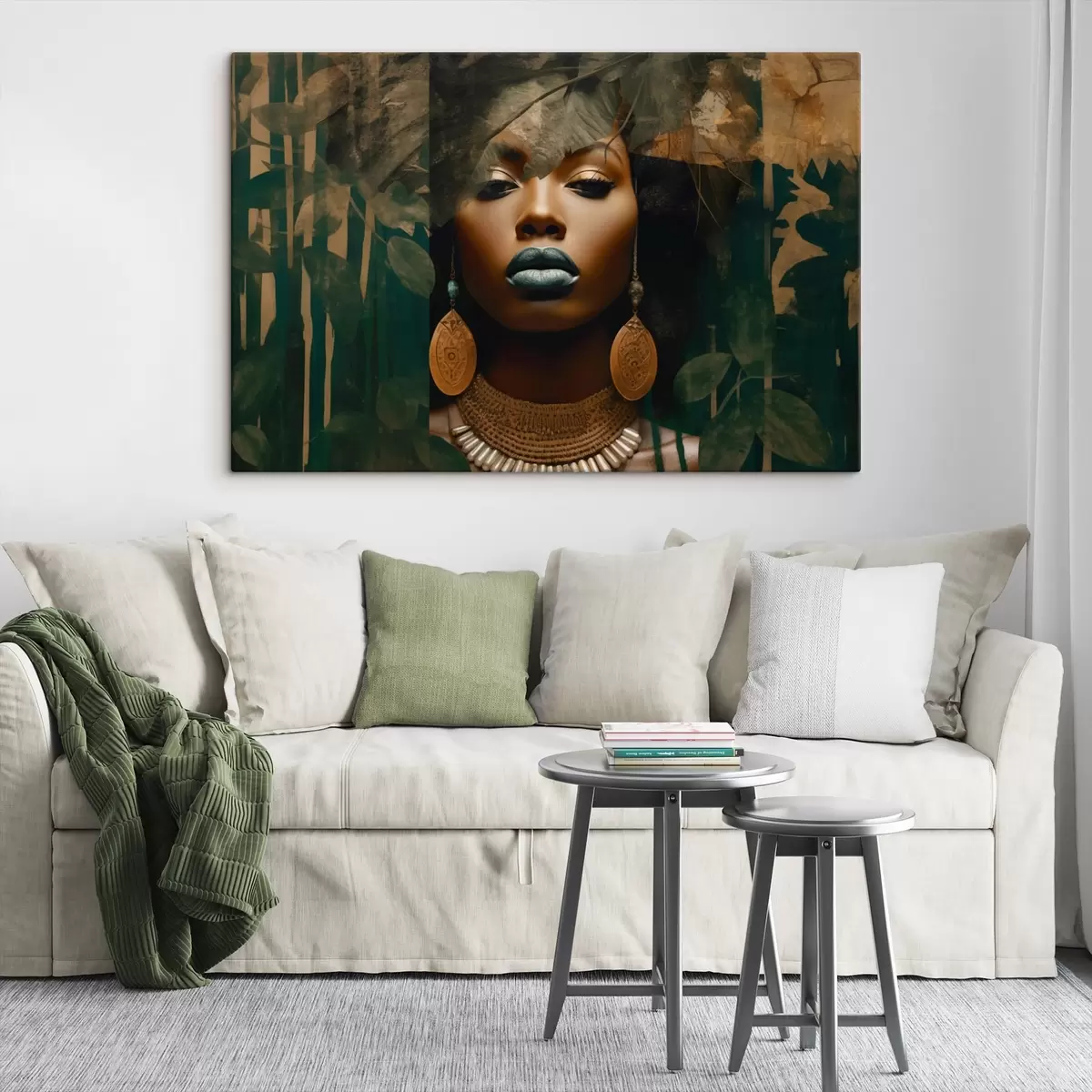 Gemälde Gesicht eines Mädchens auf abstraktem Waldhintergrund Art. s43466