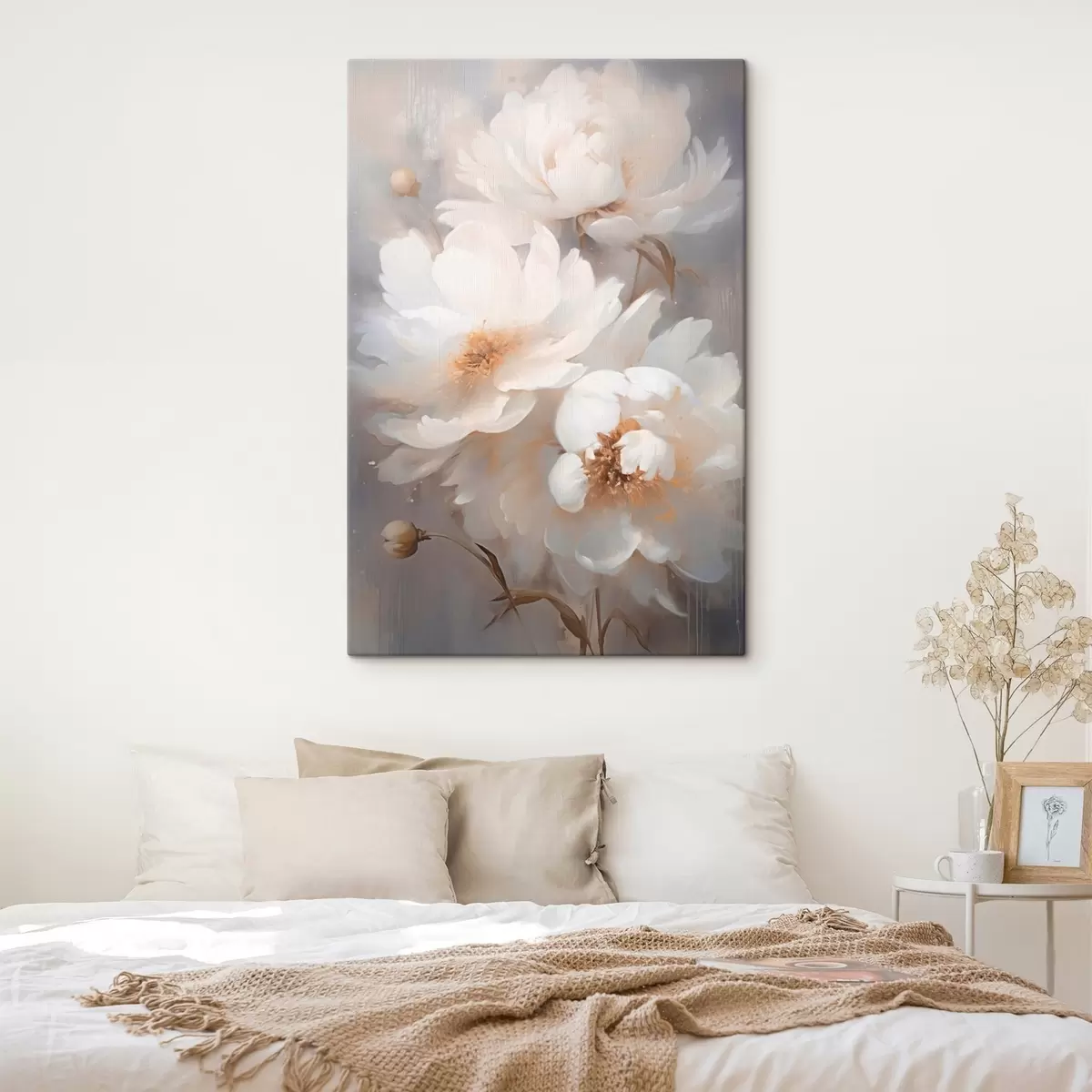 Gemälde Weiße Blumen und Stängel auf unscharfem Hintergrund Art. s43473