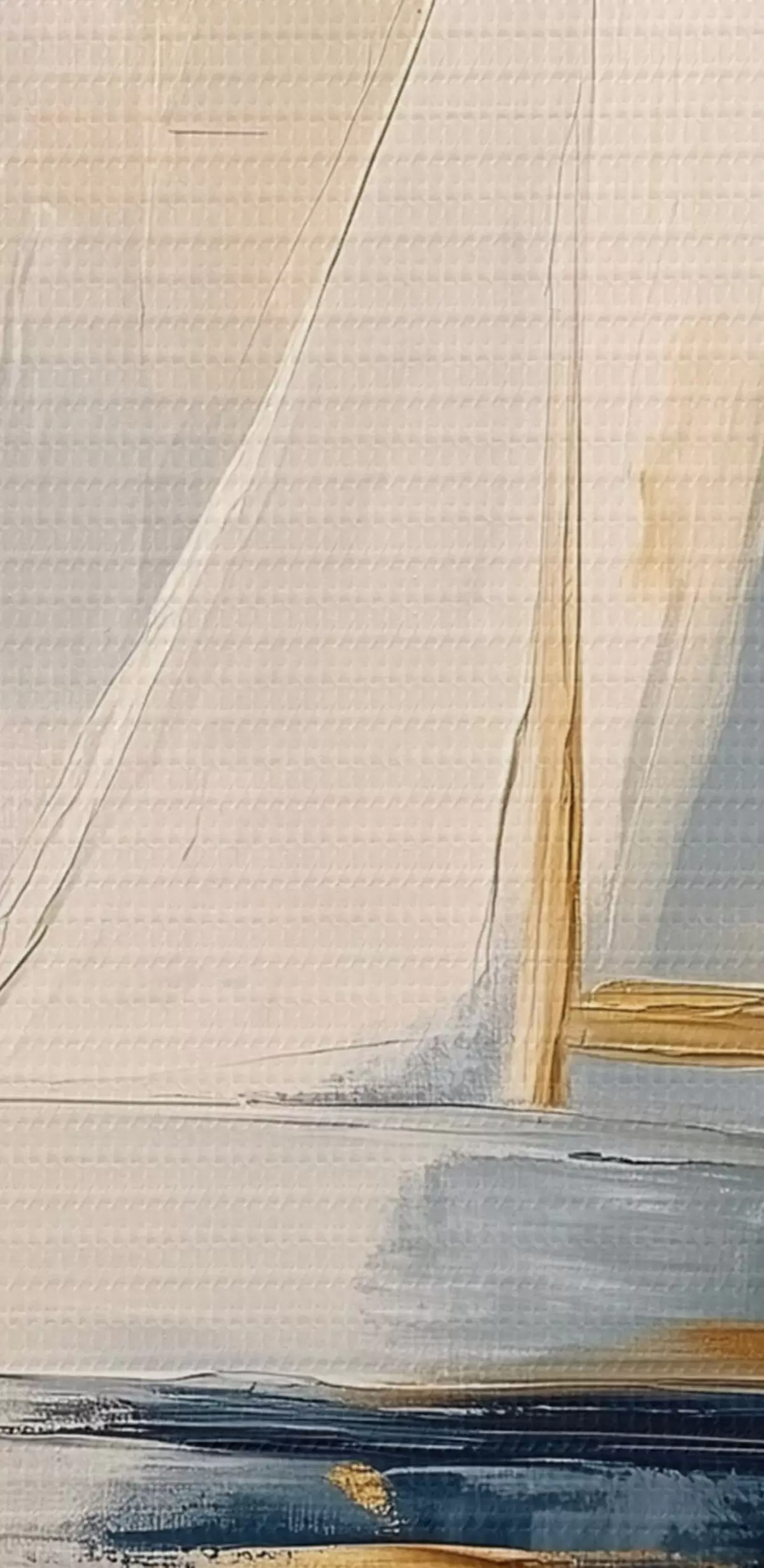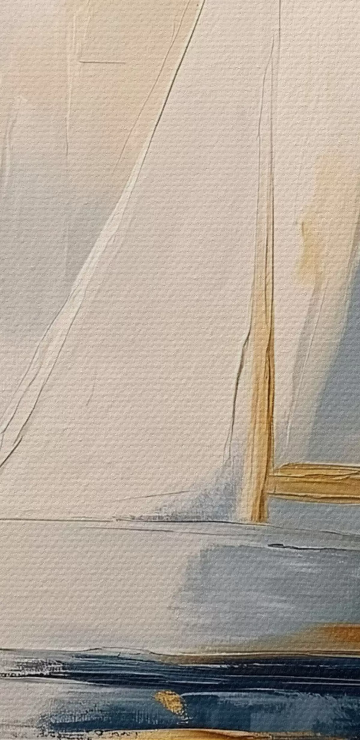 Gemälde Abstraktion mit den Segelbooten im Meer, Acryl-Stil, Sonnenuntergang Art. s43500