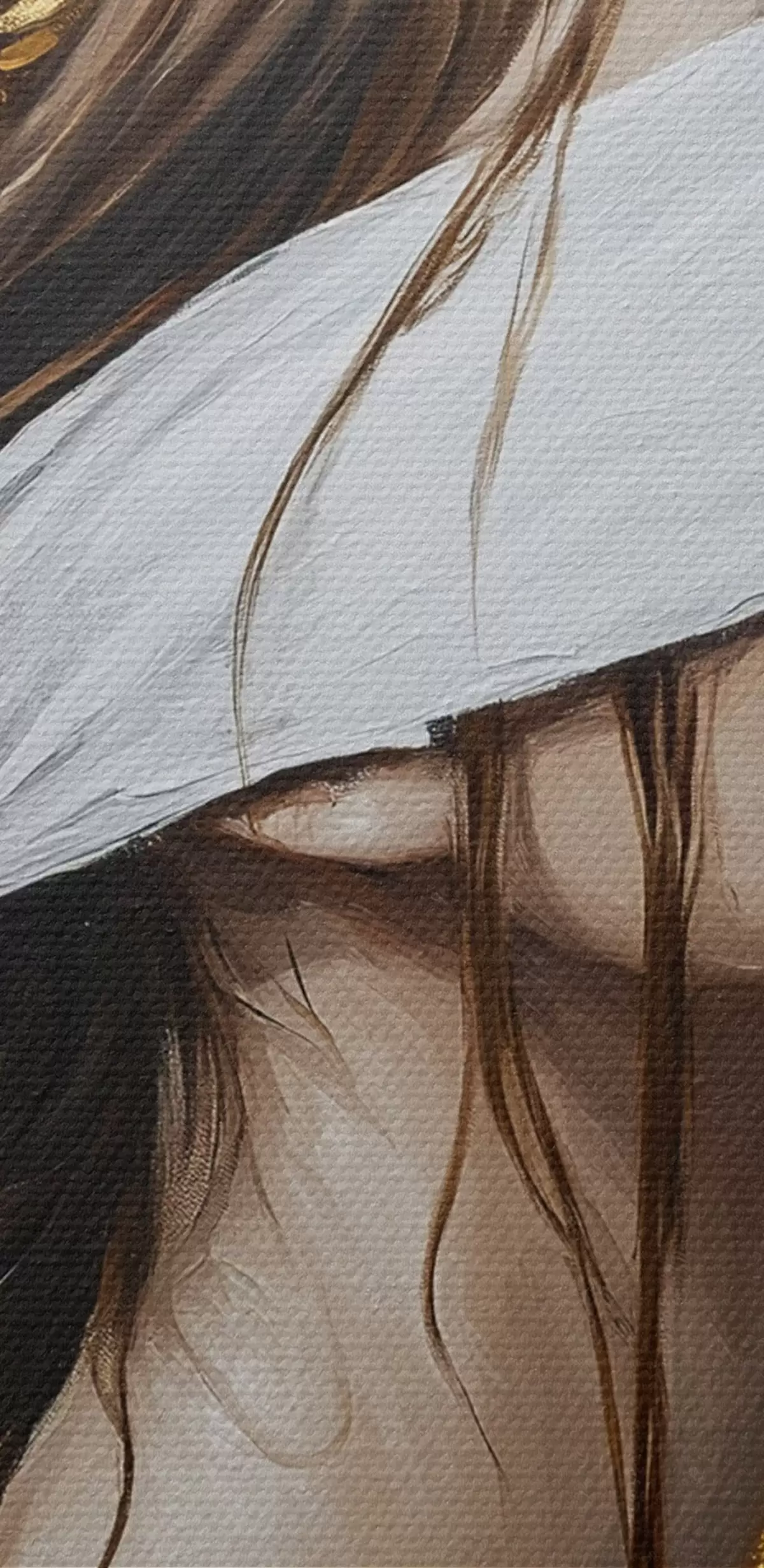 Gemälde Frau mit Augenbinde, Griechenland, Zeichnung im Acrylstil Art. s43502