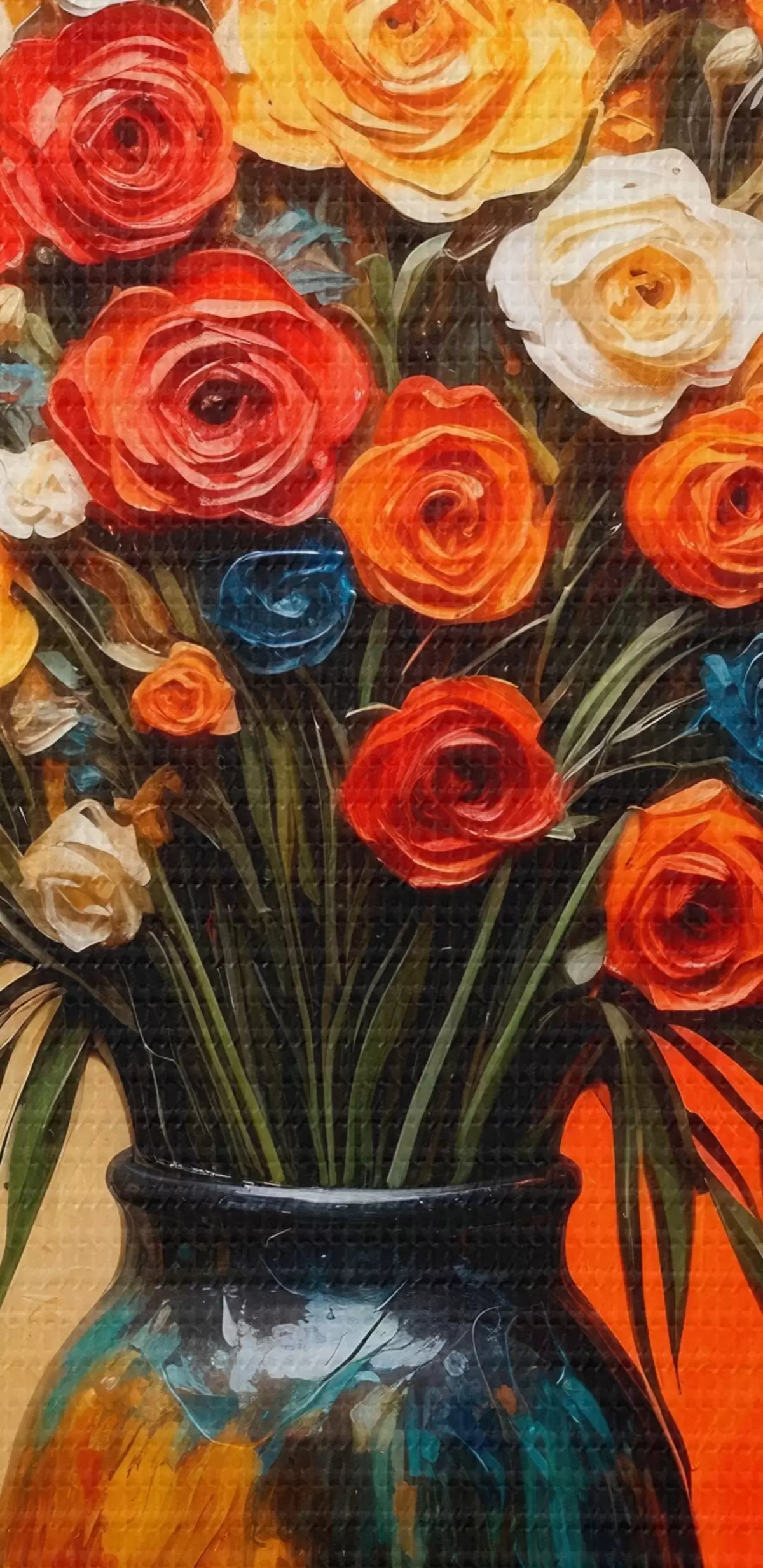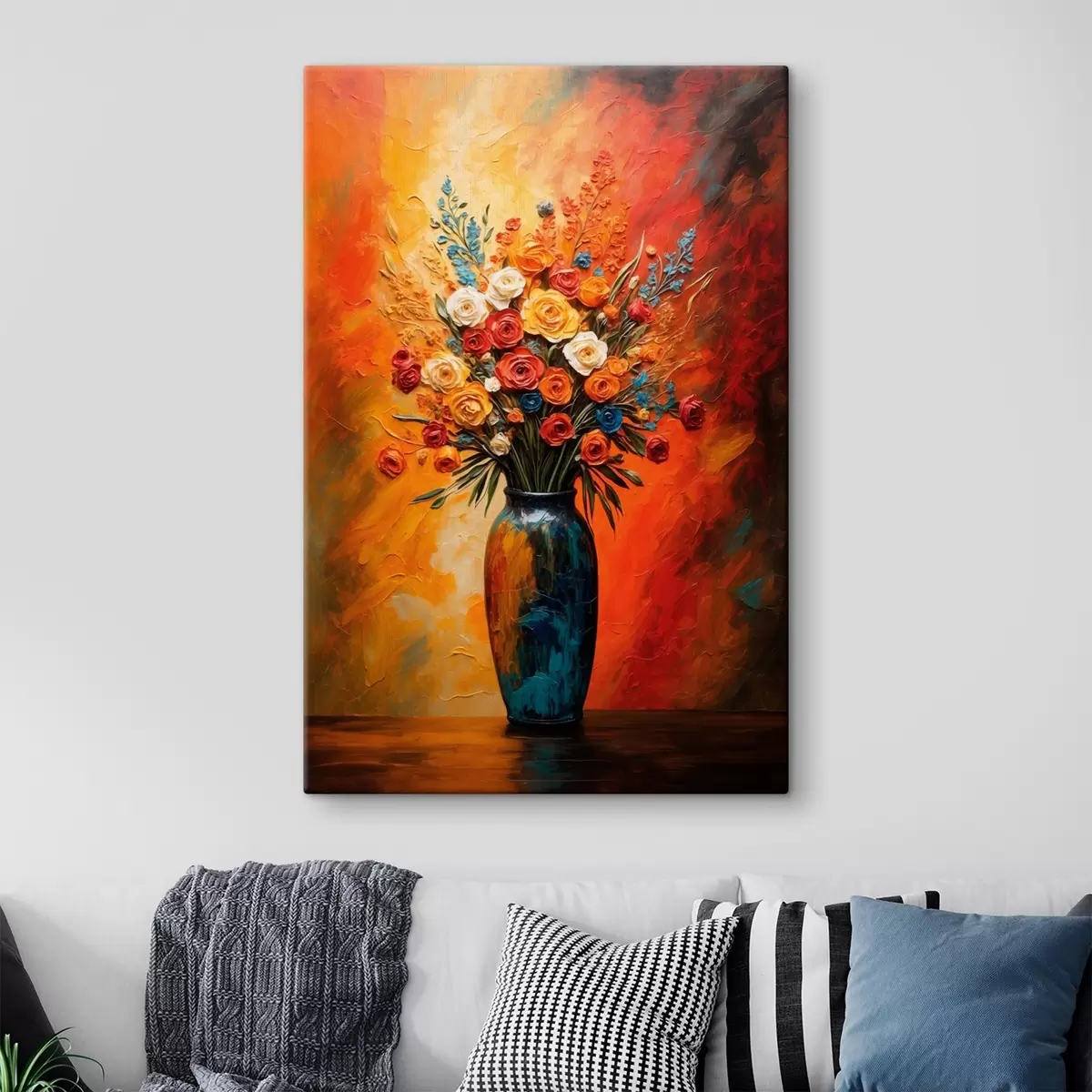 Gemälde Verschiedene Blumen in Vase auf rot-gelbem Hintergrund Art. s43867