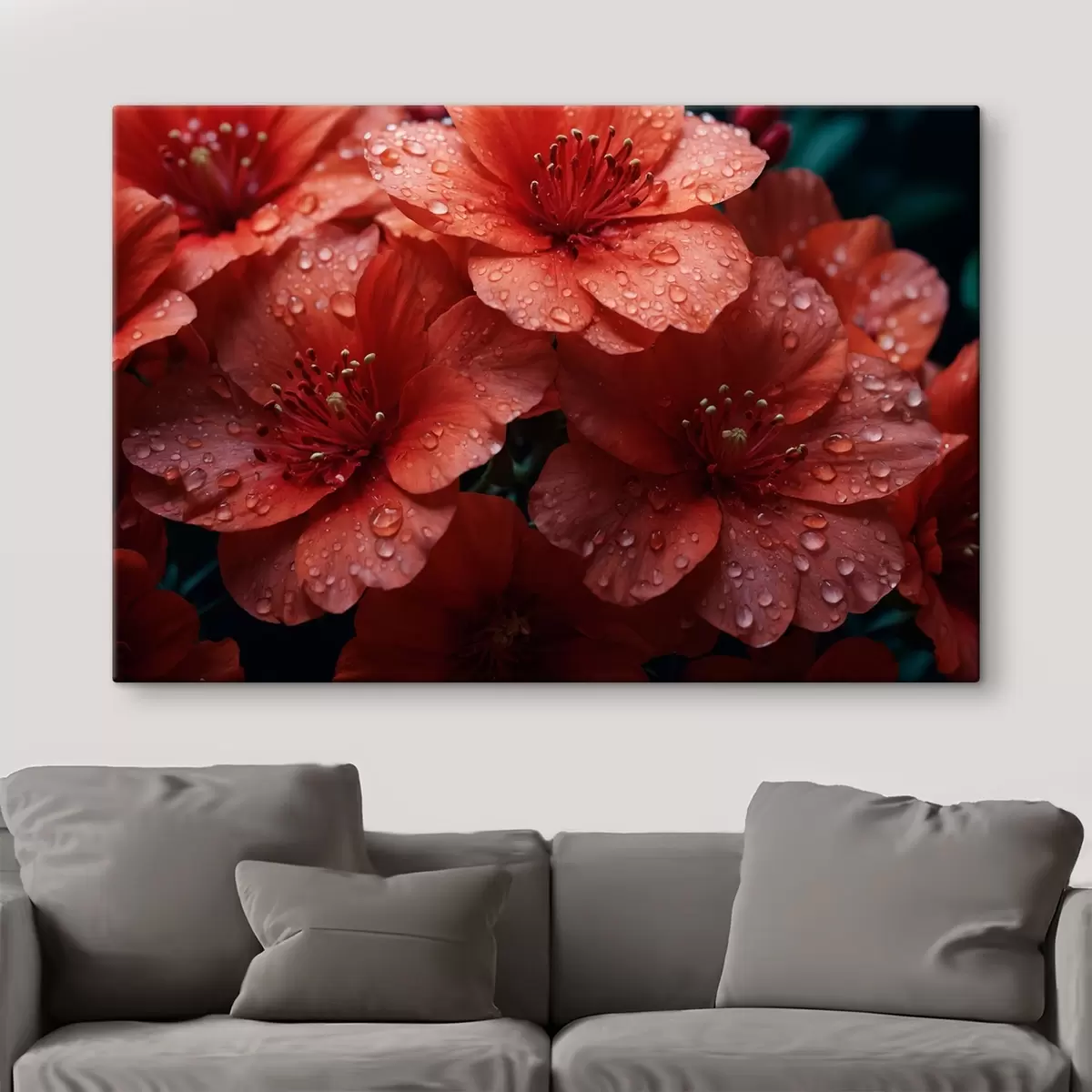 Gemälde Rote Blumen mit Tautropfen Art. s43878