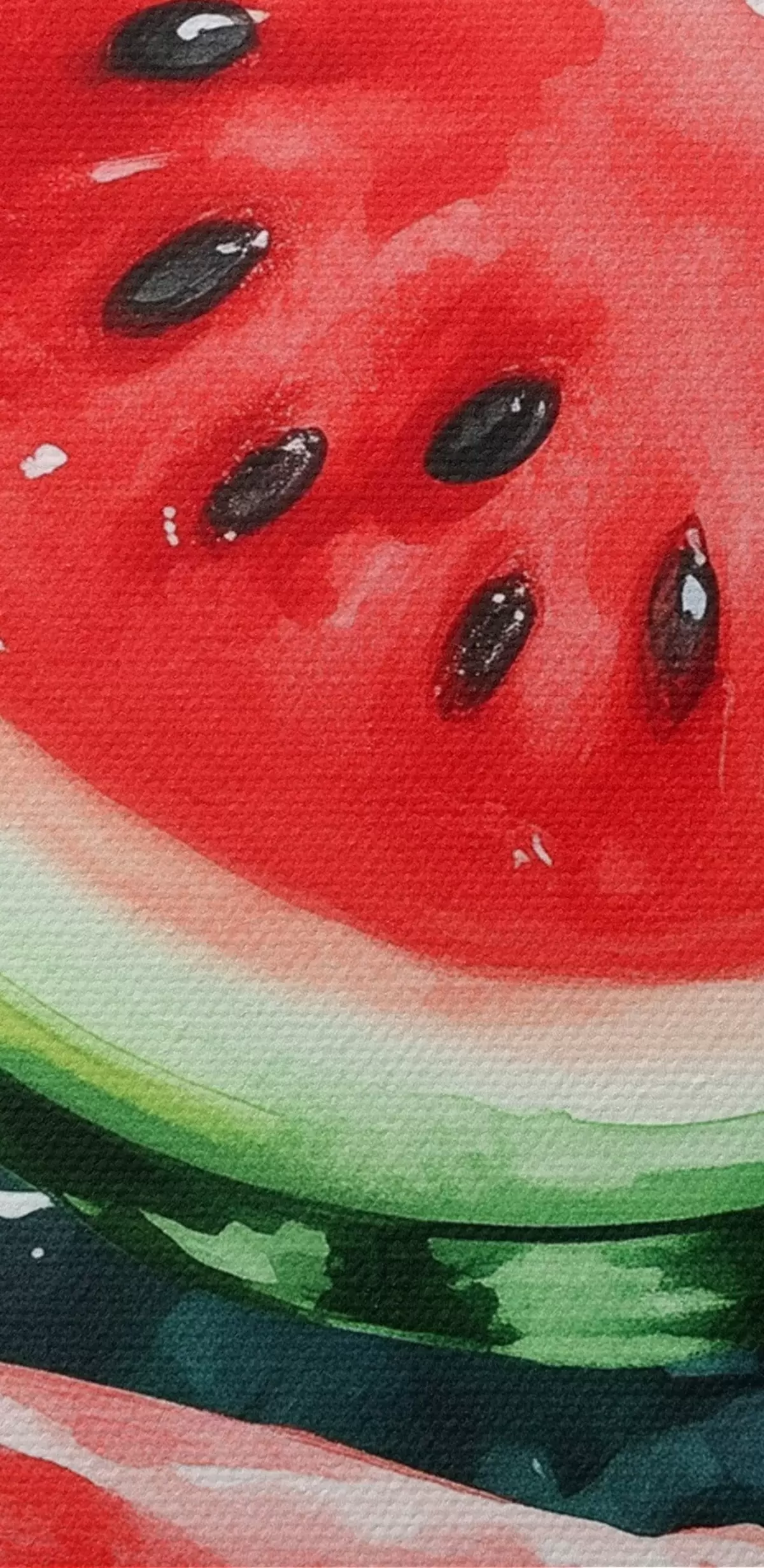 Gemälde Wassermelonenscheiben mit Eiswürfeln und Minze, Aquarellstil Art. s43880