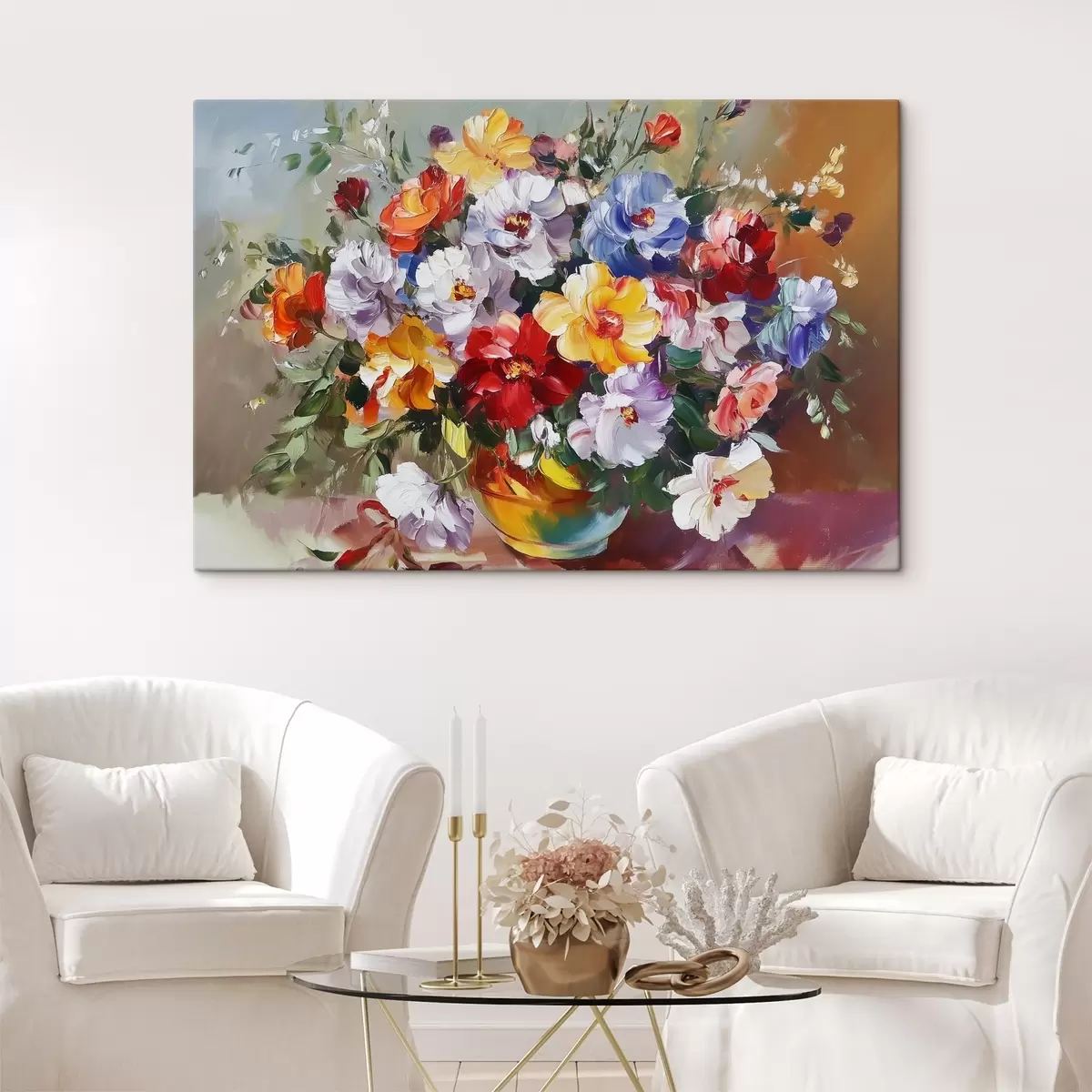 Gemälde Mehrfarbige Blumen in einer Vase im Stil von Ölfarben Art. s43909