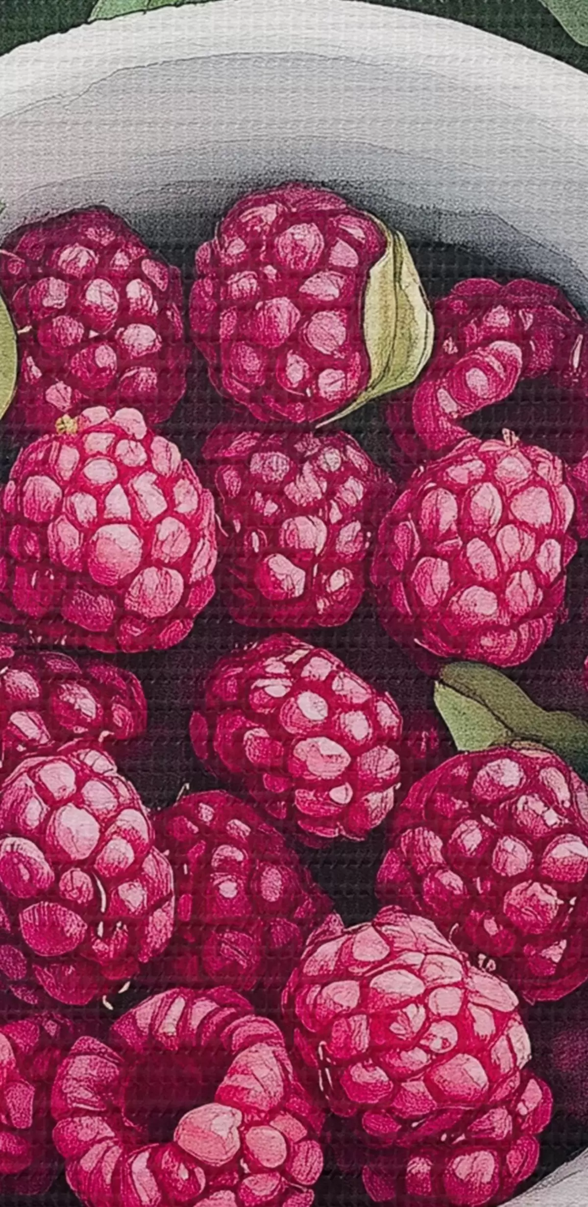 Fototapete Saftige Himbeeren im Wald, rustikal, Blätter, Aquarellstil s44023