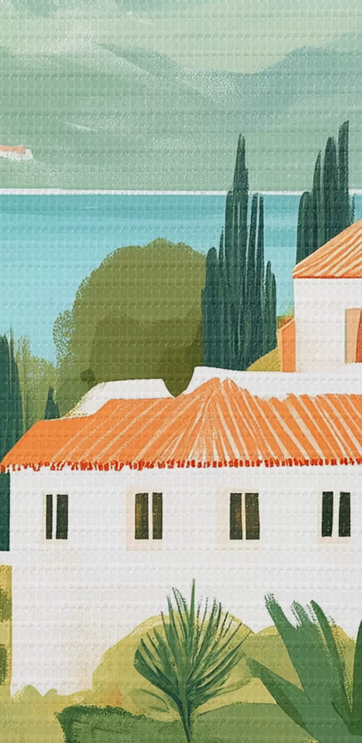Fototapete Mediterrane Landschaften mit Orangenbäumen und Häusern, Meeresküste s44027