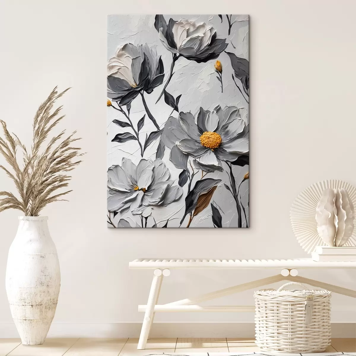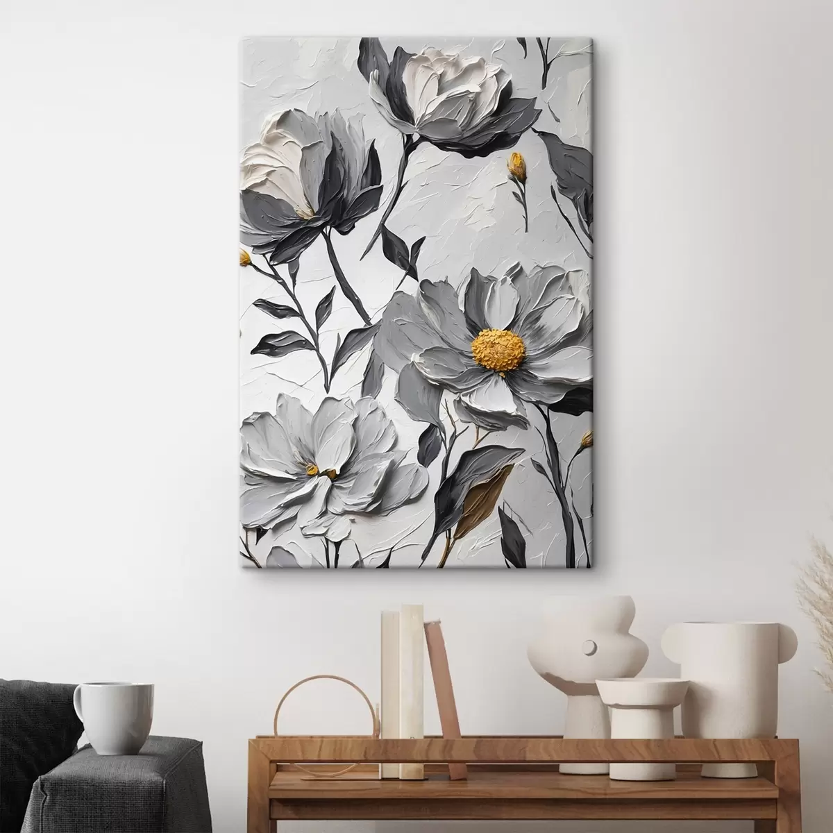 Fototapete Graue Blumen auf grauem Hintergrund im Stil der Ölmalerei s44080