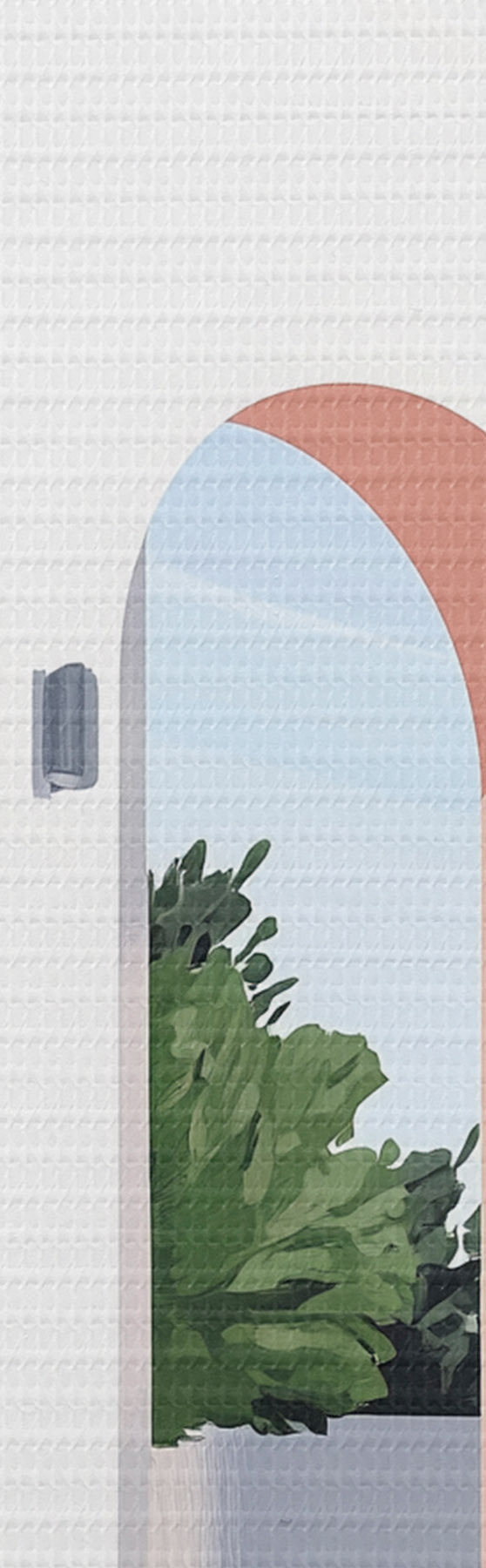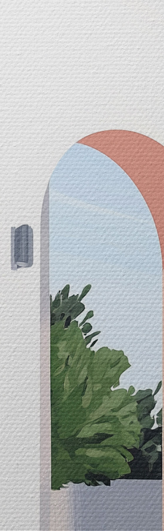 Gemälde Weiße Villa mit Bögen und tropischem Garten, mediterraner, flacher Stil Art. s44153