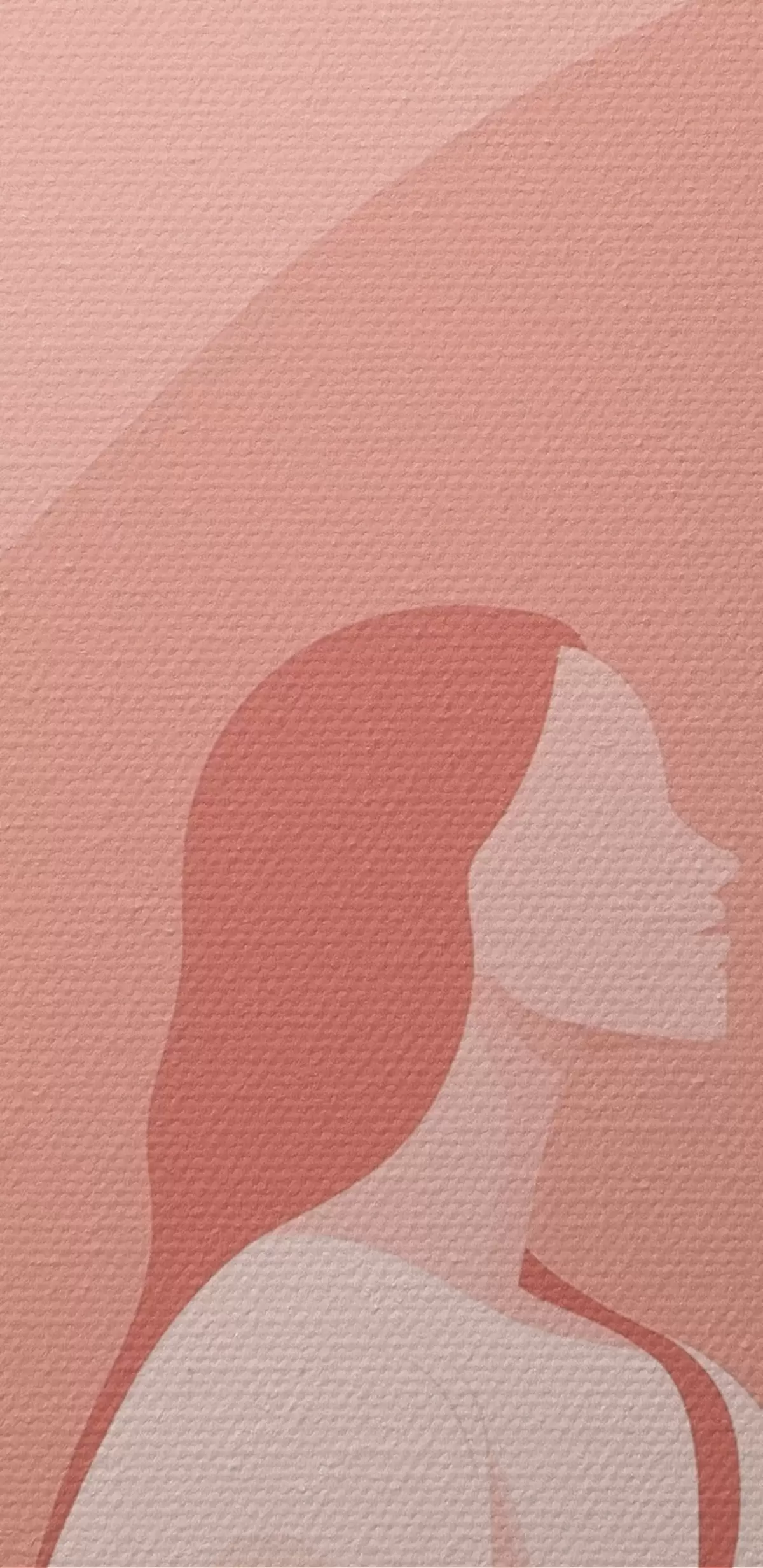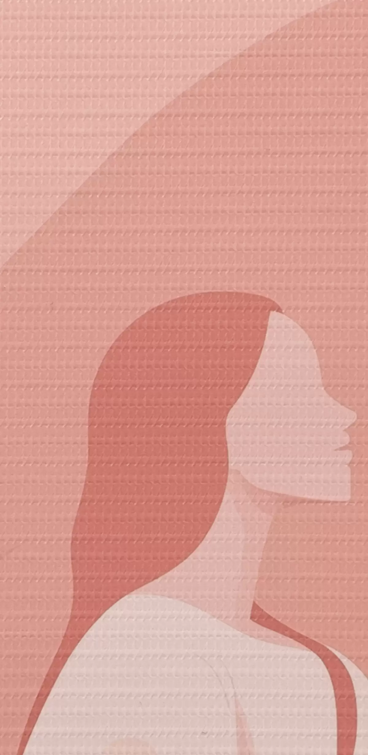 Gemälde Frau in Meditation, flacher Stil, tropische Pflanzen, rosa Farben Art. s44154