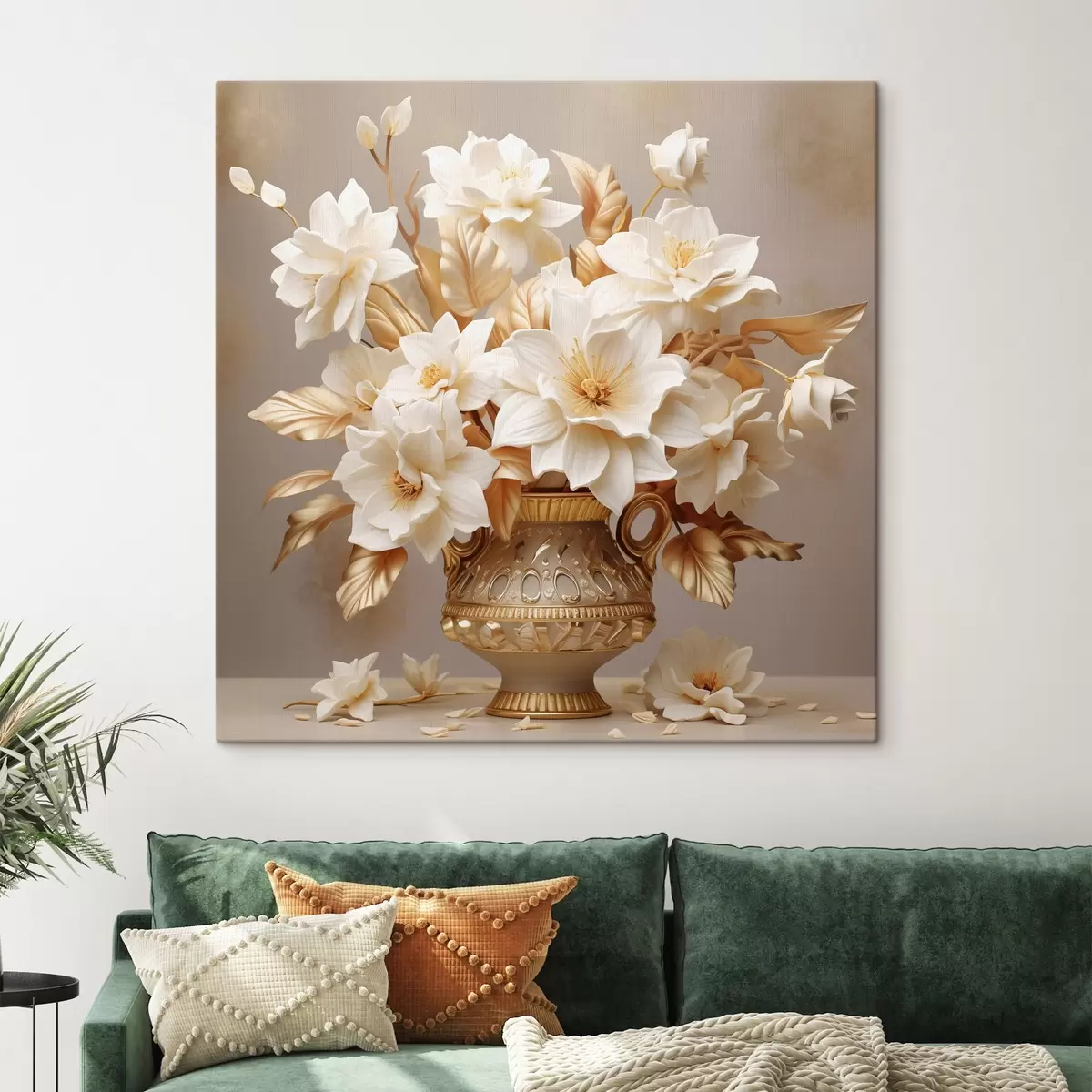 Gemälde Zarter Blumenstrauß in einer klassischen Vase im Stil des Realismus Art. s44237