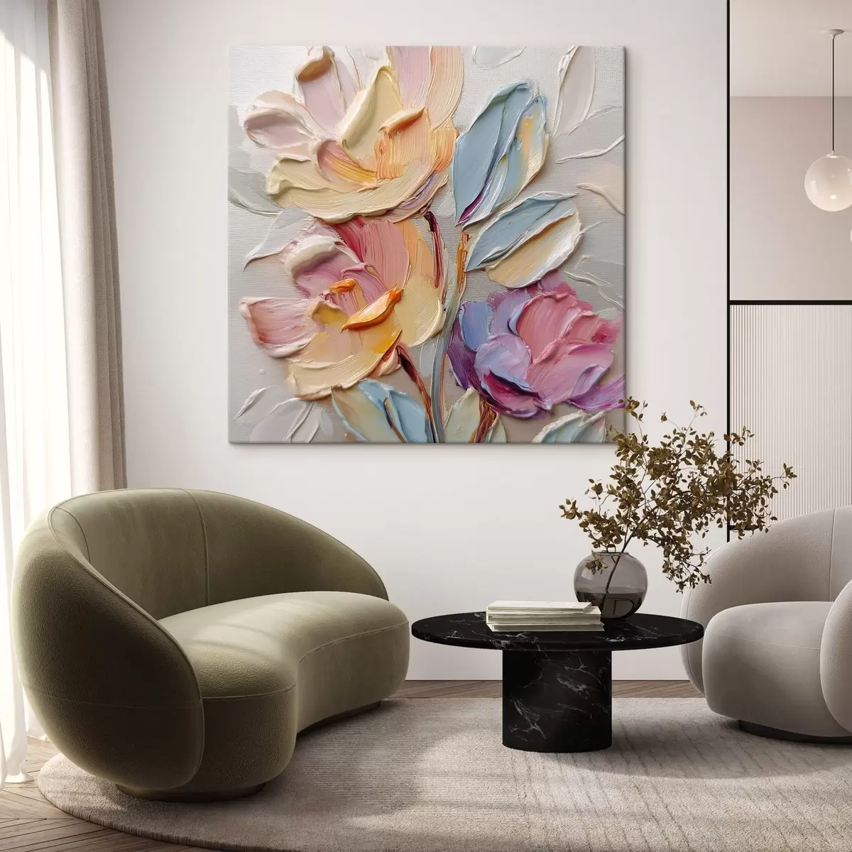 Drei Materialtypen stehen zur Verfügung: Economic Canvas - ein dichtes und haltbares Material für den Digitaldruck, identisch mit Malerleinwand, wasserfeste Oberfläche, realistische Wiedergabe von Details, mittelkörniges Material. Premium Canvas - die Textur ähnelt der einer Malerleinwand (verwobene kleine Fäden). Weiche, detaillierte Wiedergabe des Bildes auf einer matten Oberfläche. Eco-Premium - hochwertiges Gewebe aus 100% Baumwolle. Dank der natürlichen Baumwollfasern ist das Material langlebig und verschleißfest. Hervorragende Farbwiedergabe und Detailtreue.