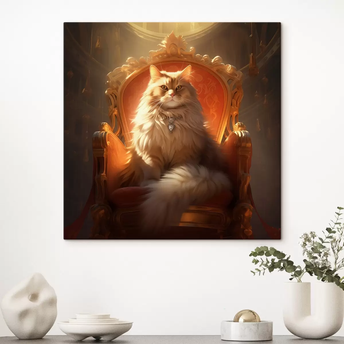 Gemälde Regal Katze mit bernsteinfarbenen Augen auf einem Thron in den Strahlen der Herrlichkeit im Barock-Stil Art. s44250