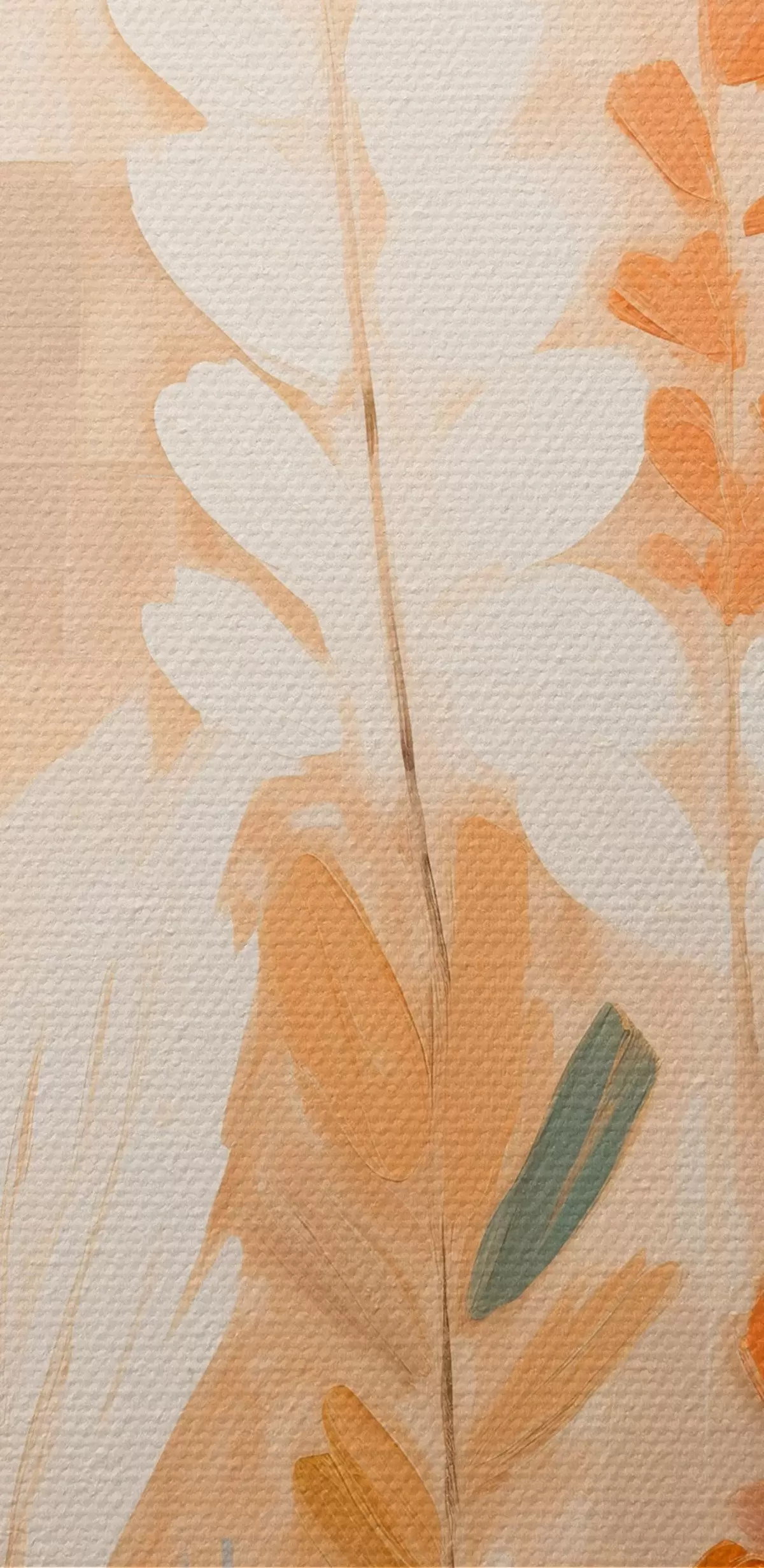 Gemälde Warme Abstraktion mit Gräsern und Blumen in einer beige-orangefarbenen Palette im Jugendstil Art. s44252