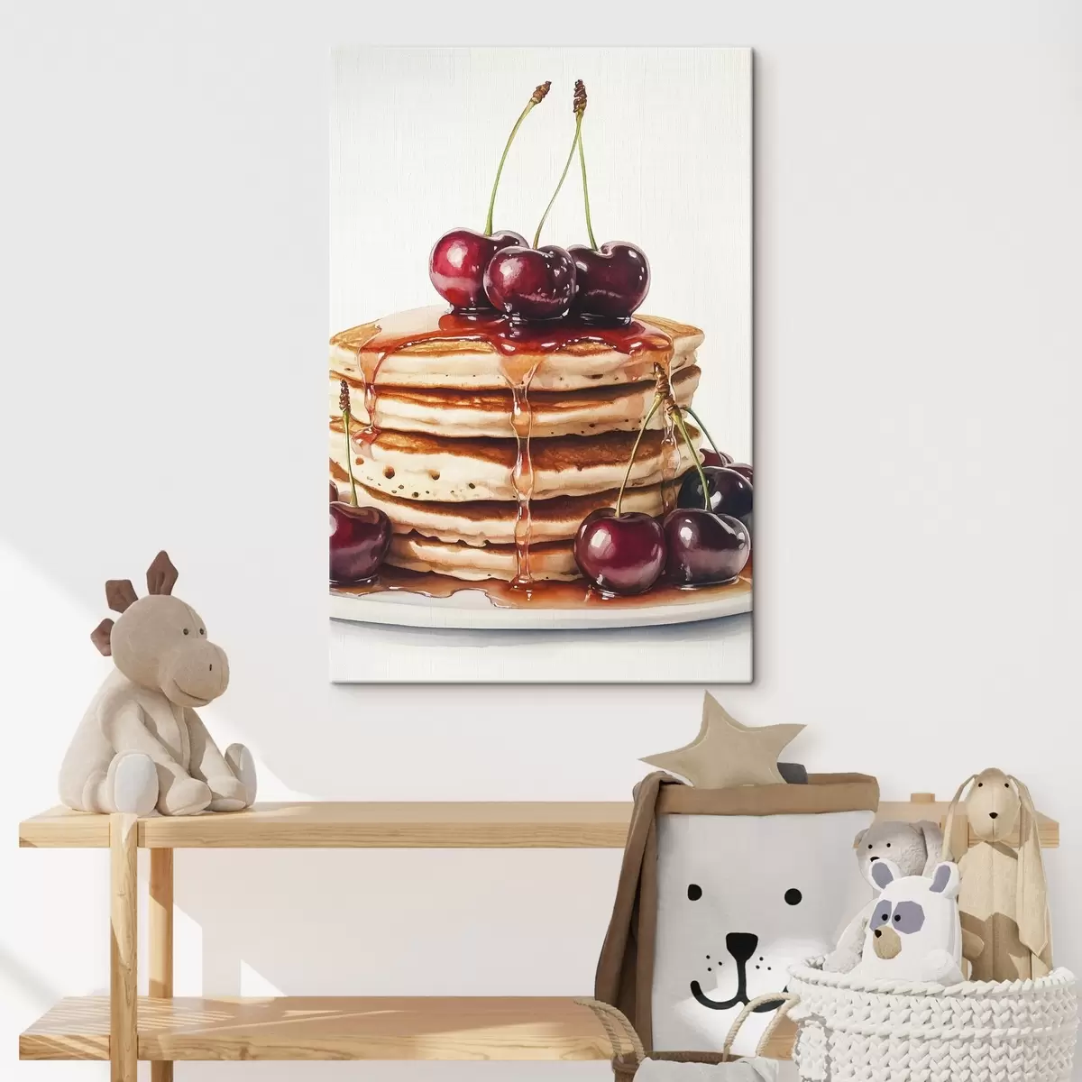 Gemälde Leckere Pfannkuchen mit Kirschen und Sirup, Aquarellstil Art. s44305