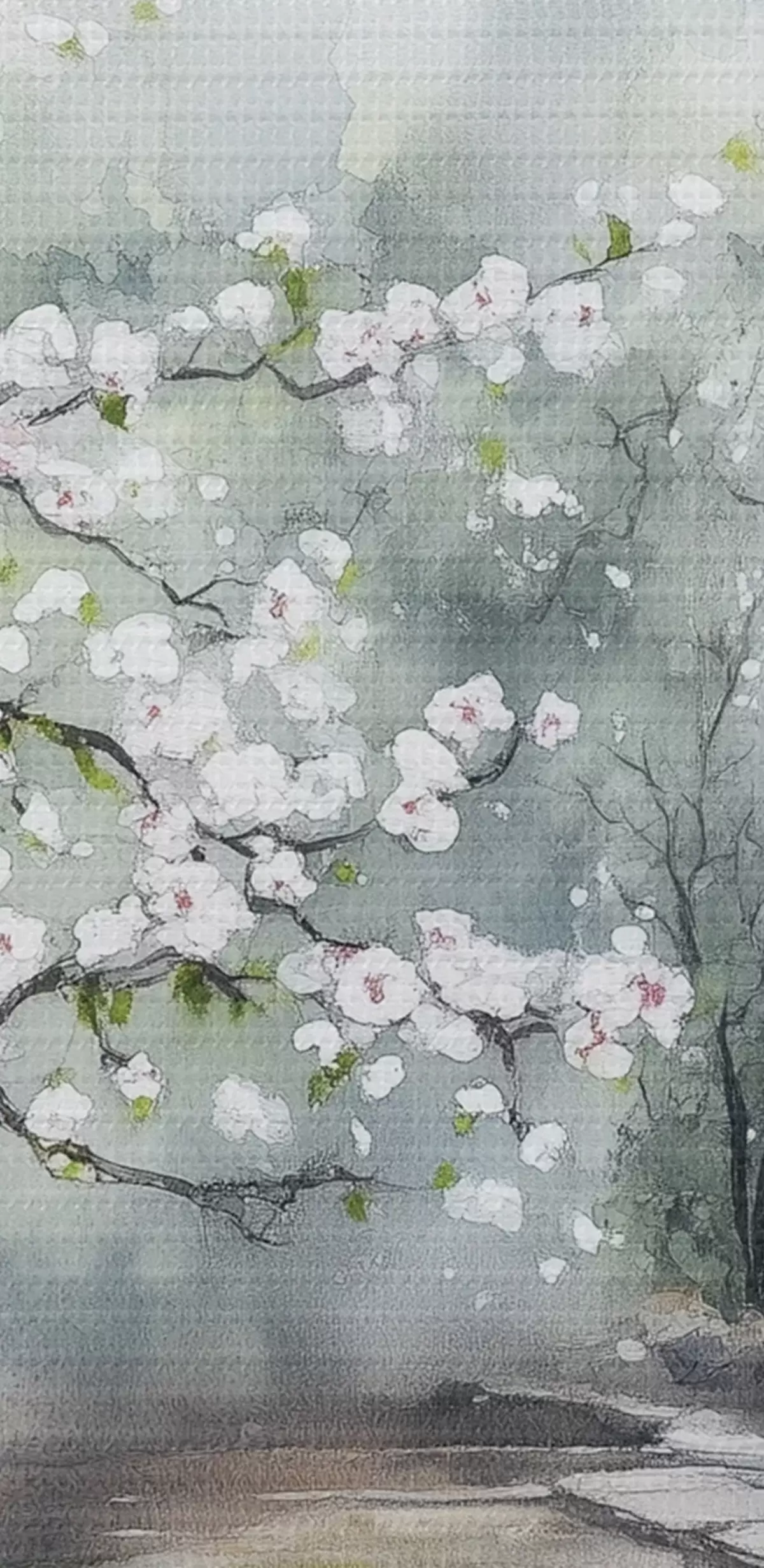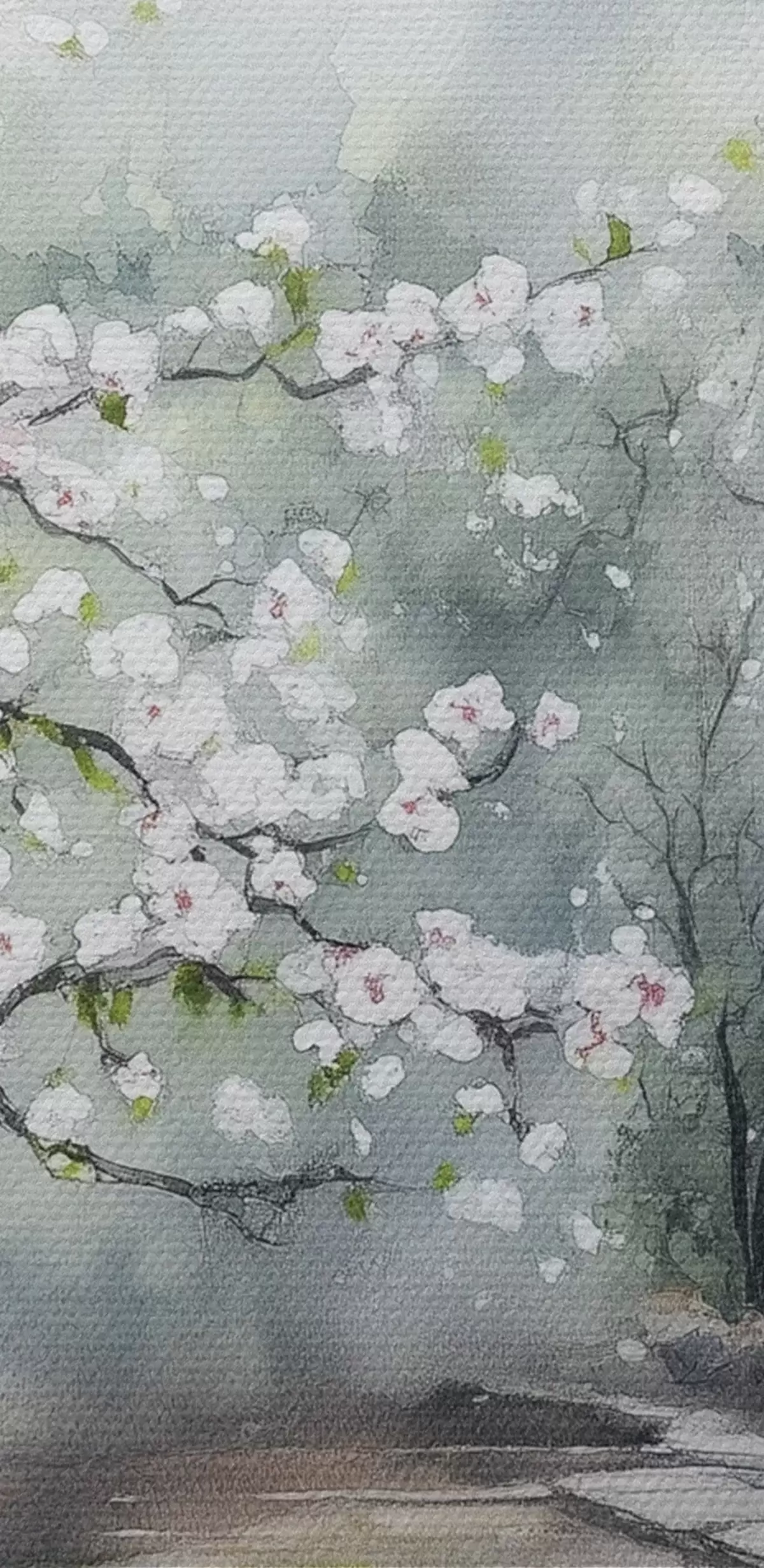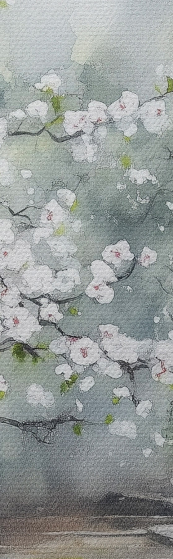 Gemälde Japanischer Garten mit Kirschbaum und Haus, orientalisch, Aquarellstil Art. s44309