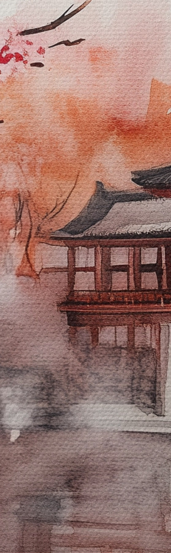 Gemälde Schöne japanische Landschaft mit blühendem Kirschbaum und Haus am See Art. s44310