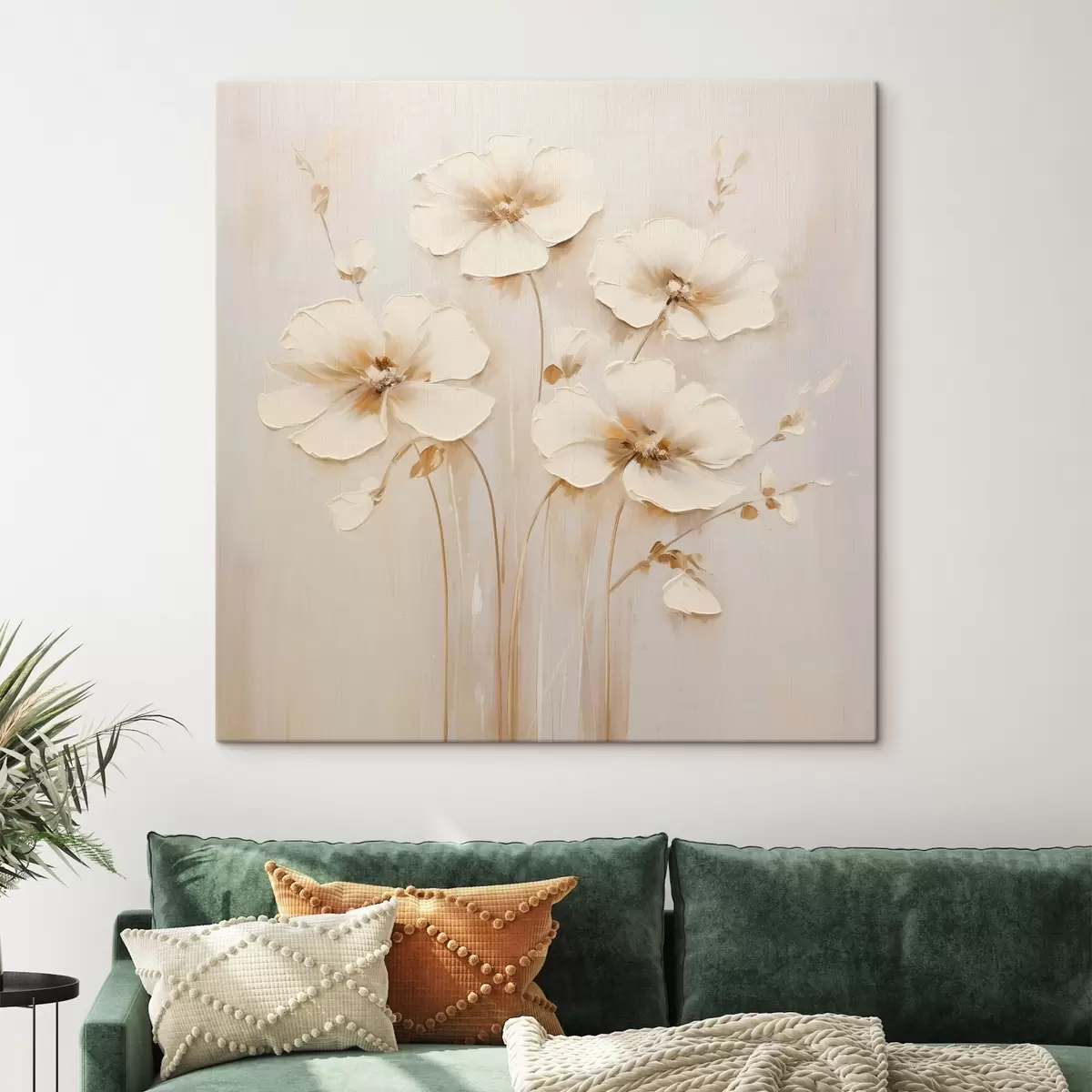 Gemälde Beigefarbene Blumen mit voluminösen Blütenblättern in Pastelltönen Art. s44337