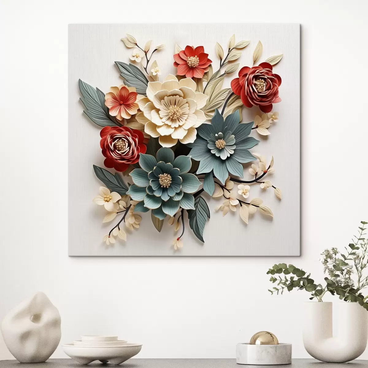 Gemälde Helle und voluminöse 3D-Blumenkomposition Art. s44338