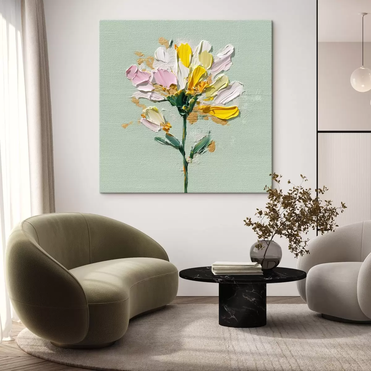 Gemälde Sonniger Blumenstrauß auf mintfarbenem Hintergrund Art. s44354