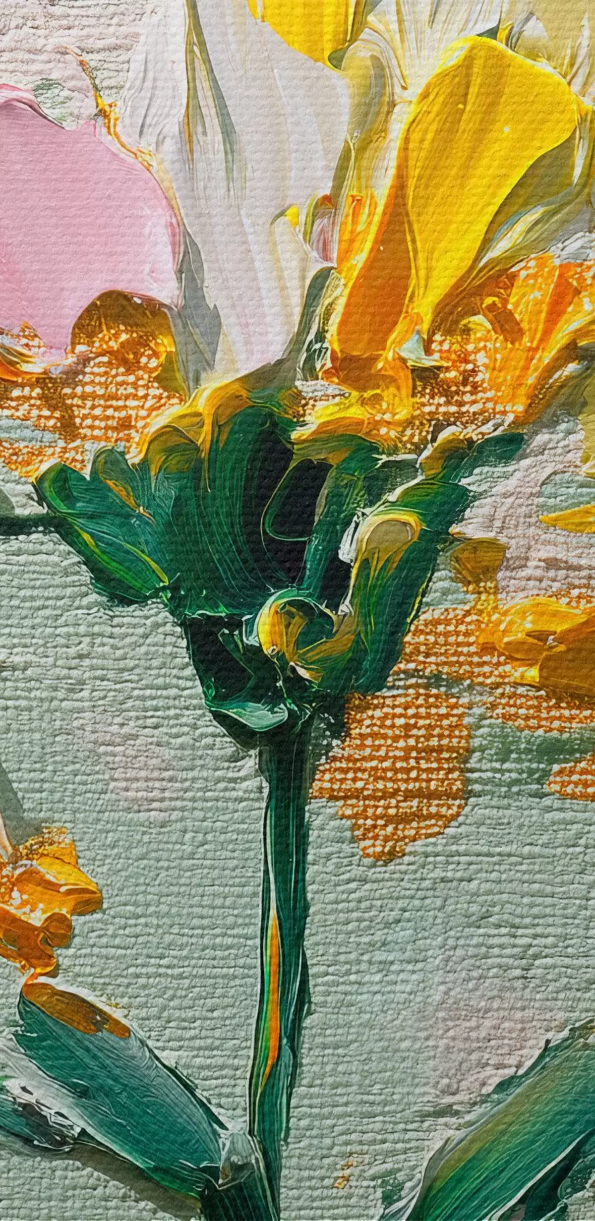 Gemälde Sonniger Blumenstrauß auf mintfarbenem Hintergrund Art. s44354