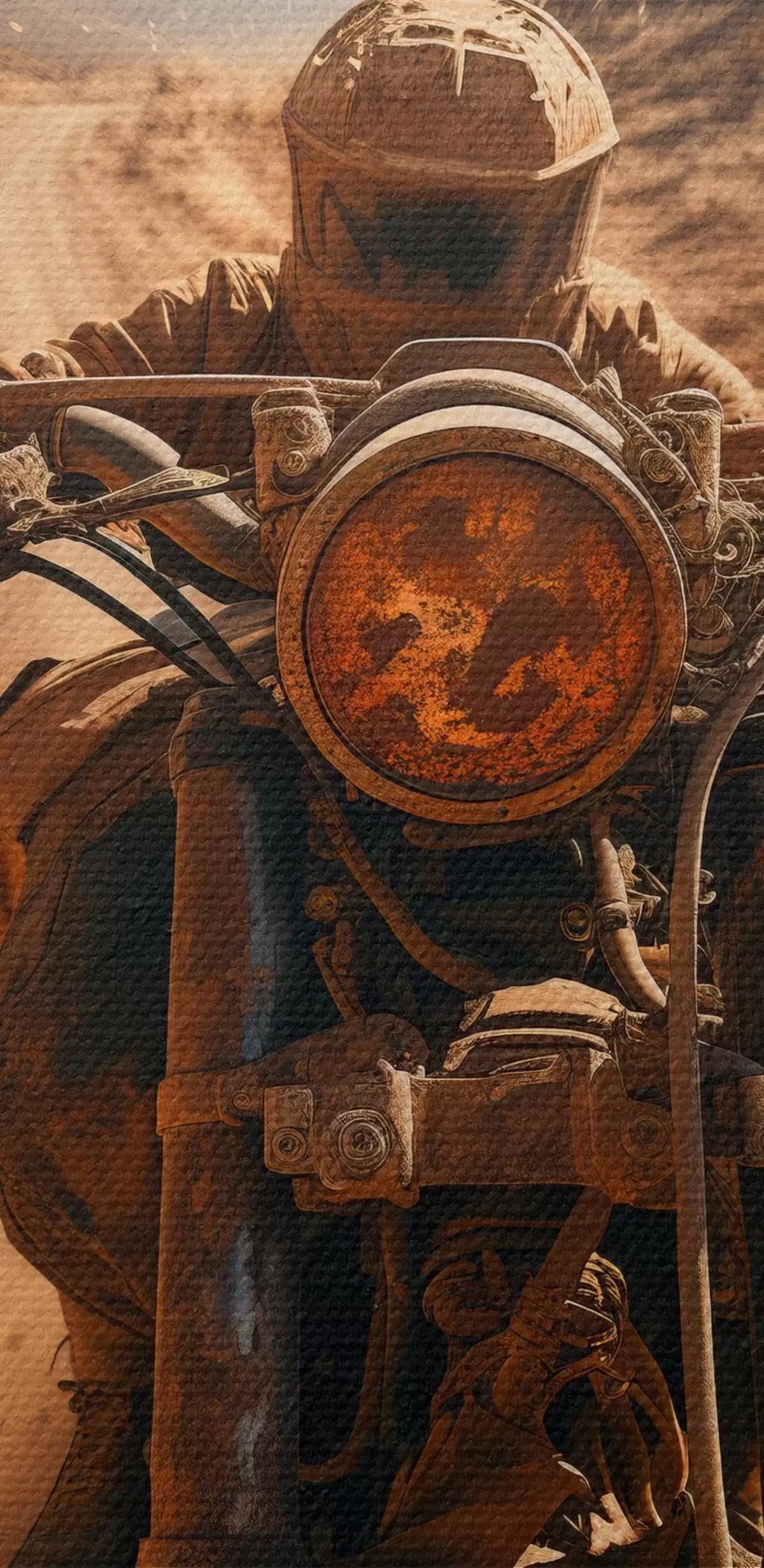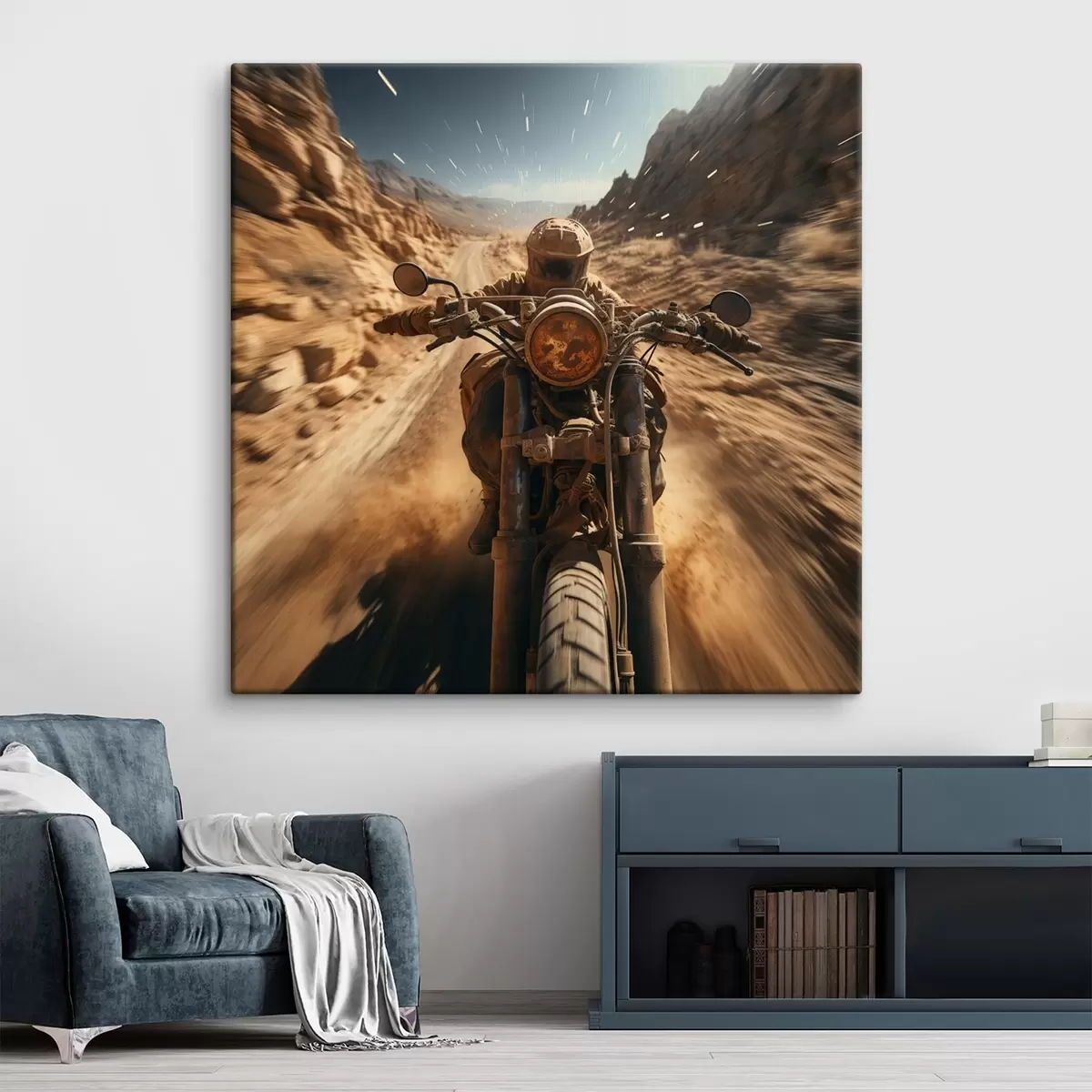 Gemälde Motorradfahrer, der eine Wüstenstraße entlang rast Art. s44361