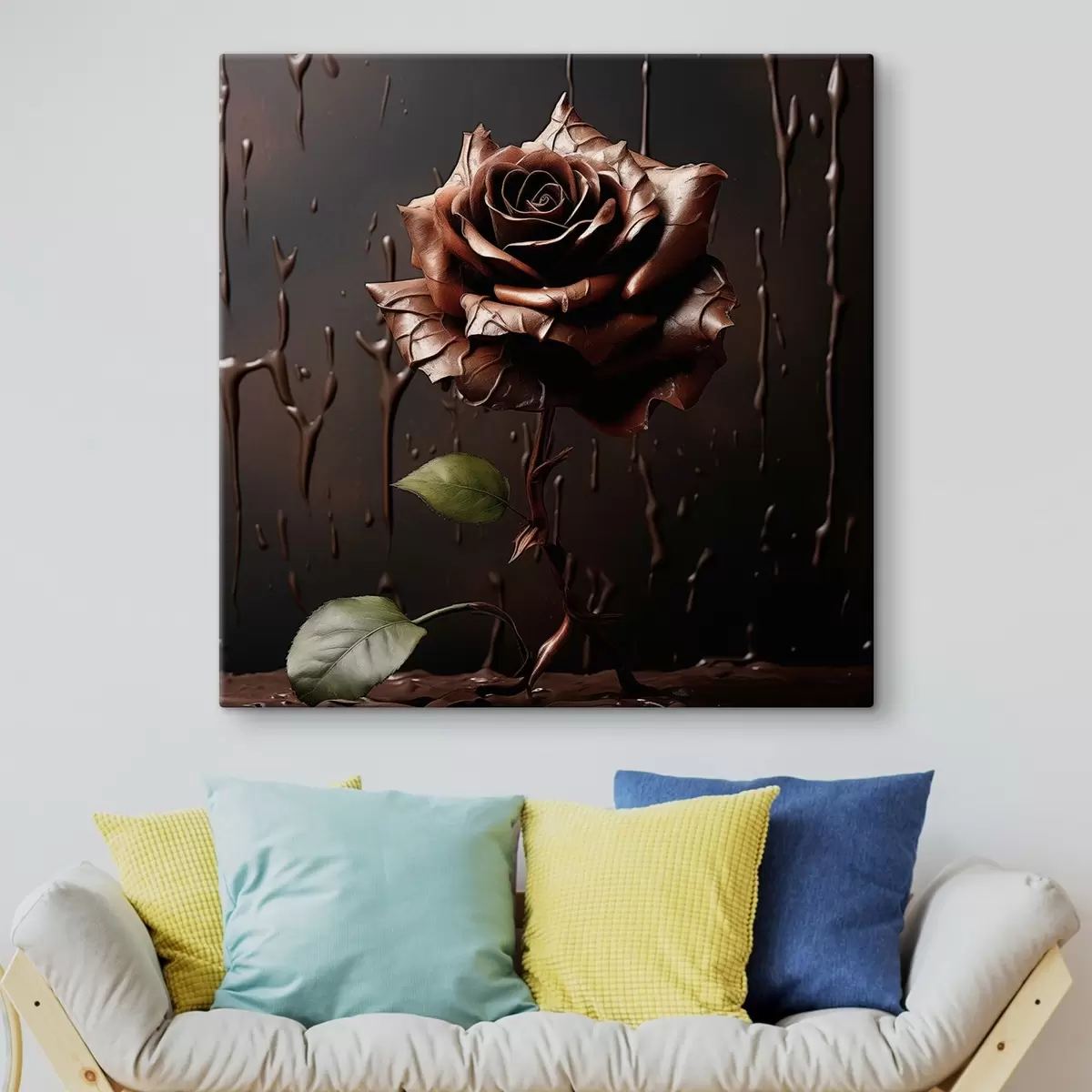 Gemälde Braune Rose auf dunklem Hintergrund mit Schokoladenspritzern Art. s44381
