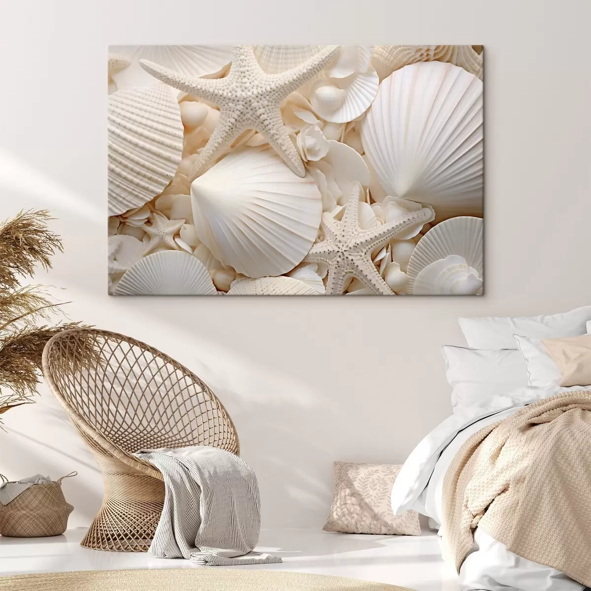 Gemälde Dekorative weiße Muscheln und Seesterne, die eine strukturierte monochromatische Komposition bilden Art. s44392