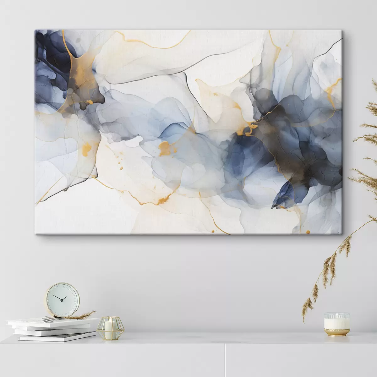 Gemälde Abstrakte Malerei mit blauer Tinte, fließende und organische Formen, zarte Texturen auf weißem Hintergrund Art. s44397