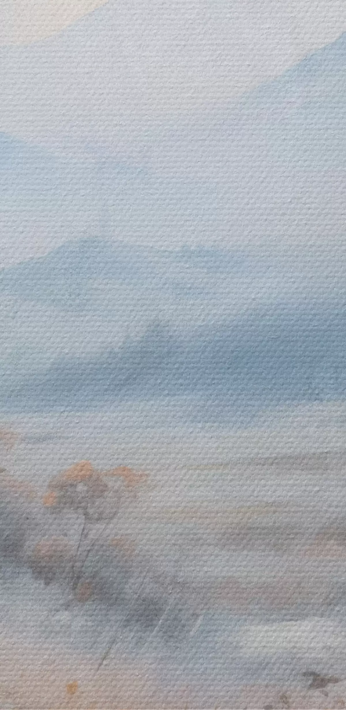 Das Gemälde kann sofort nach Erhalt aufgehängt werden. Das Gemälde wird auf einen 2 cm breiten Holzkeilrahmen aufgespannt.