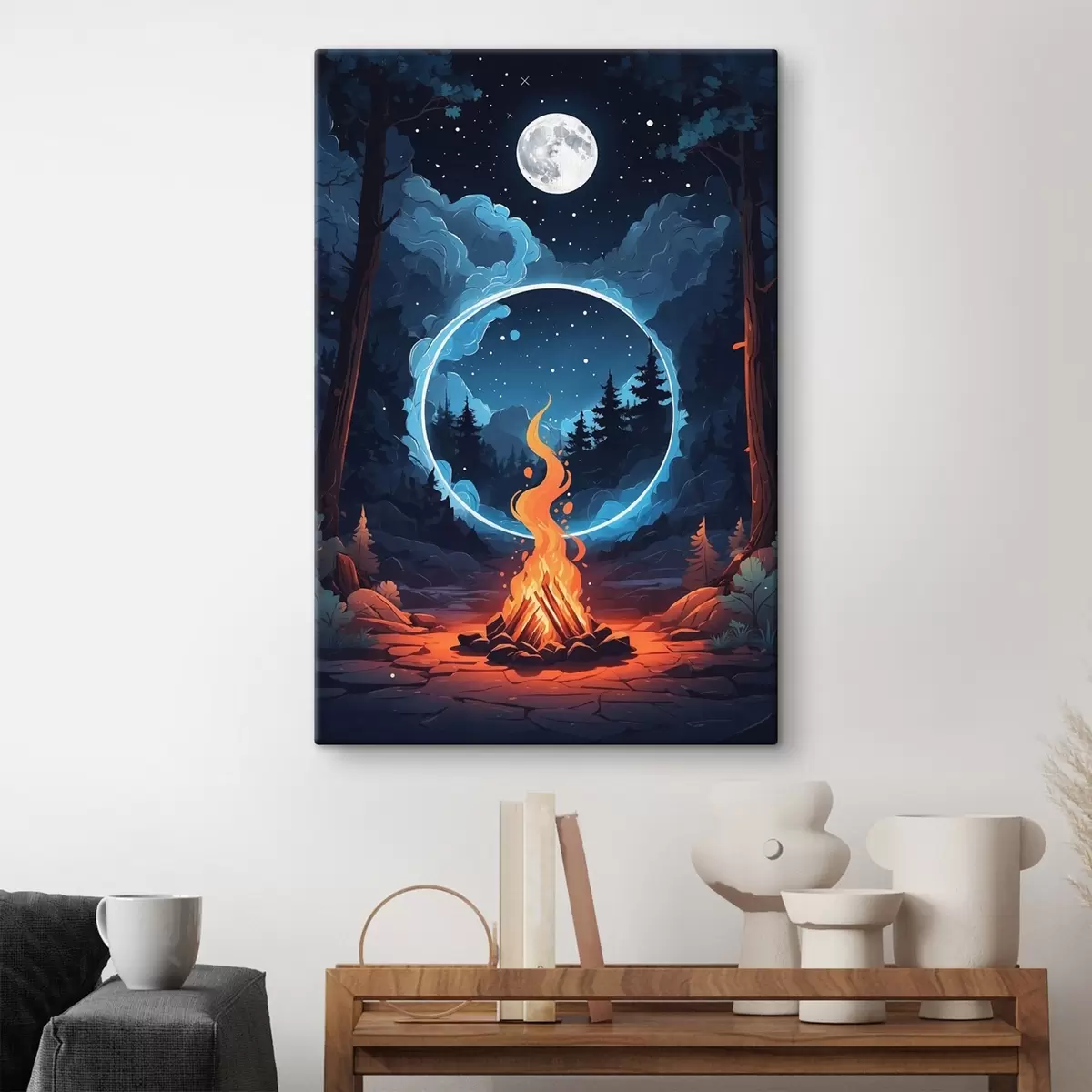 Gemälde Lagerfeuer im nächtlichen Wald Art. s44436